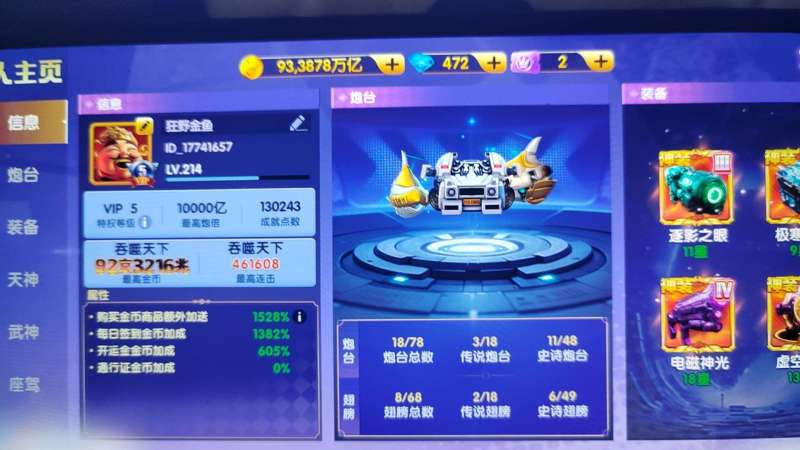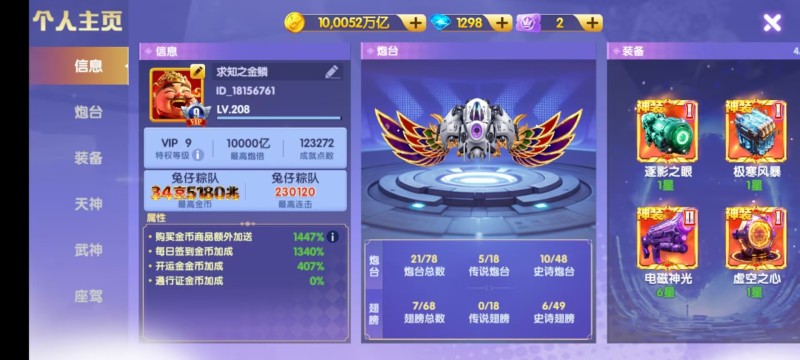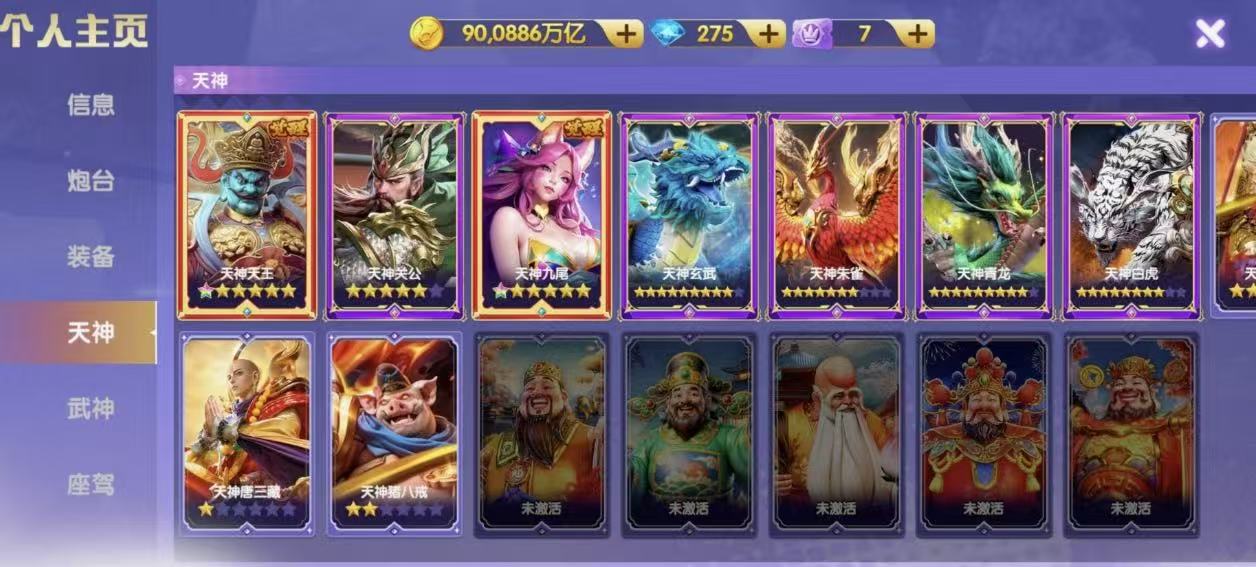 退游了新Q换绑 10000炮 天王九尾觉醒 5200神力值 3级洪荒 武神多多 2