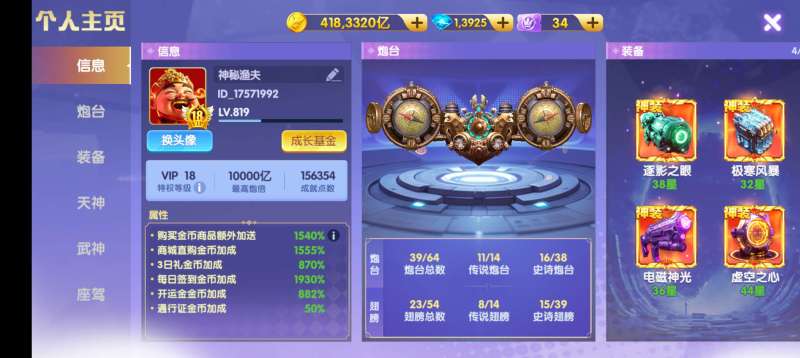 买断102京,V8,天神全觉醒,4级洪荒,1500斩,3W黑炮,没时间玩了,高爆发号,看VIP等级和天神就知道