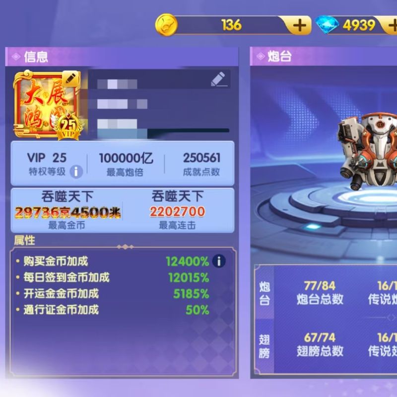 鱼乐官服,还差59加成升1.5万炮,40京分,背包道具充值