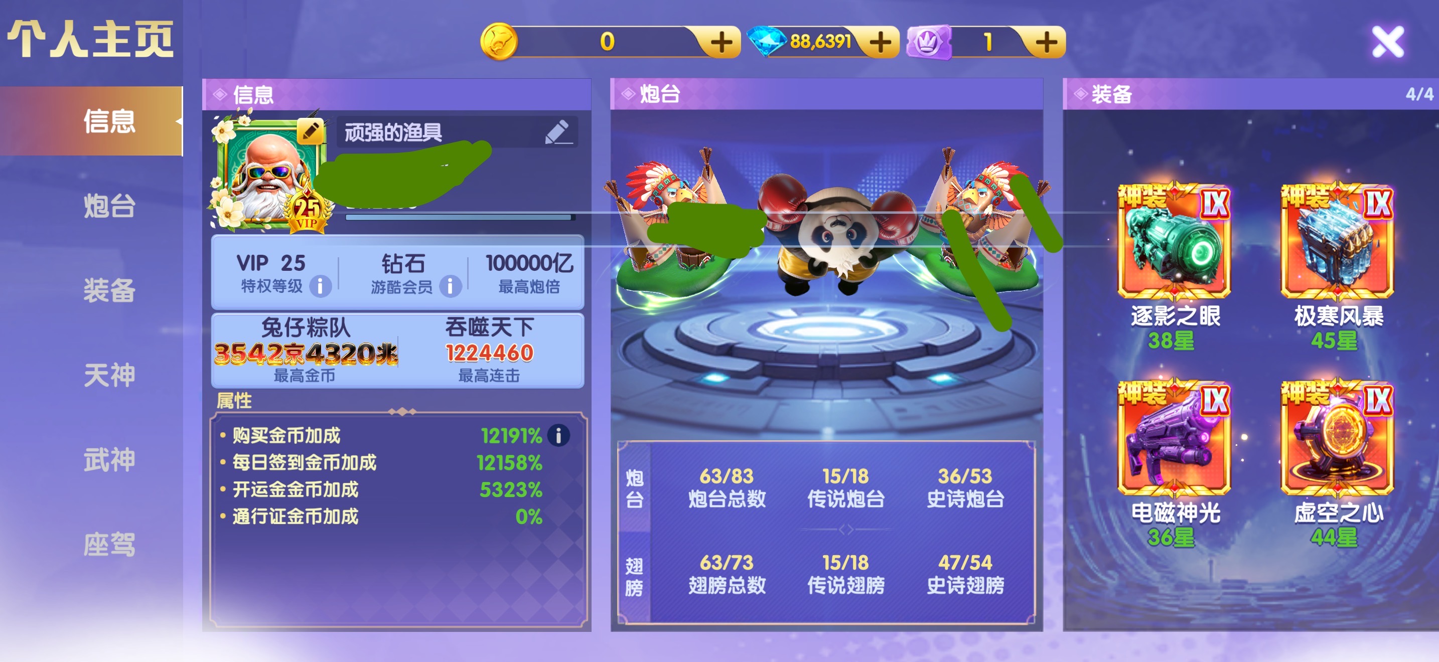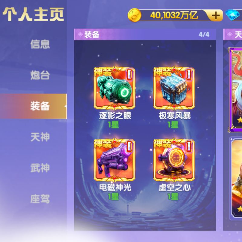 1.5万炮 小米买断 ,12⭐️神电 4⭐️天王狐狸 3级洪荒 全神装 2座驾 32级武神