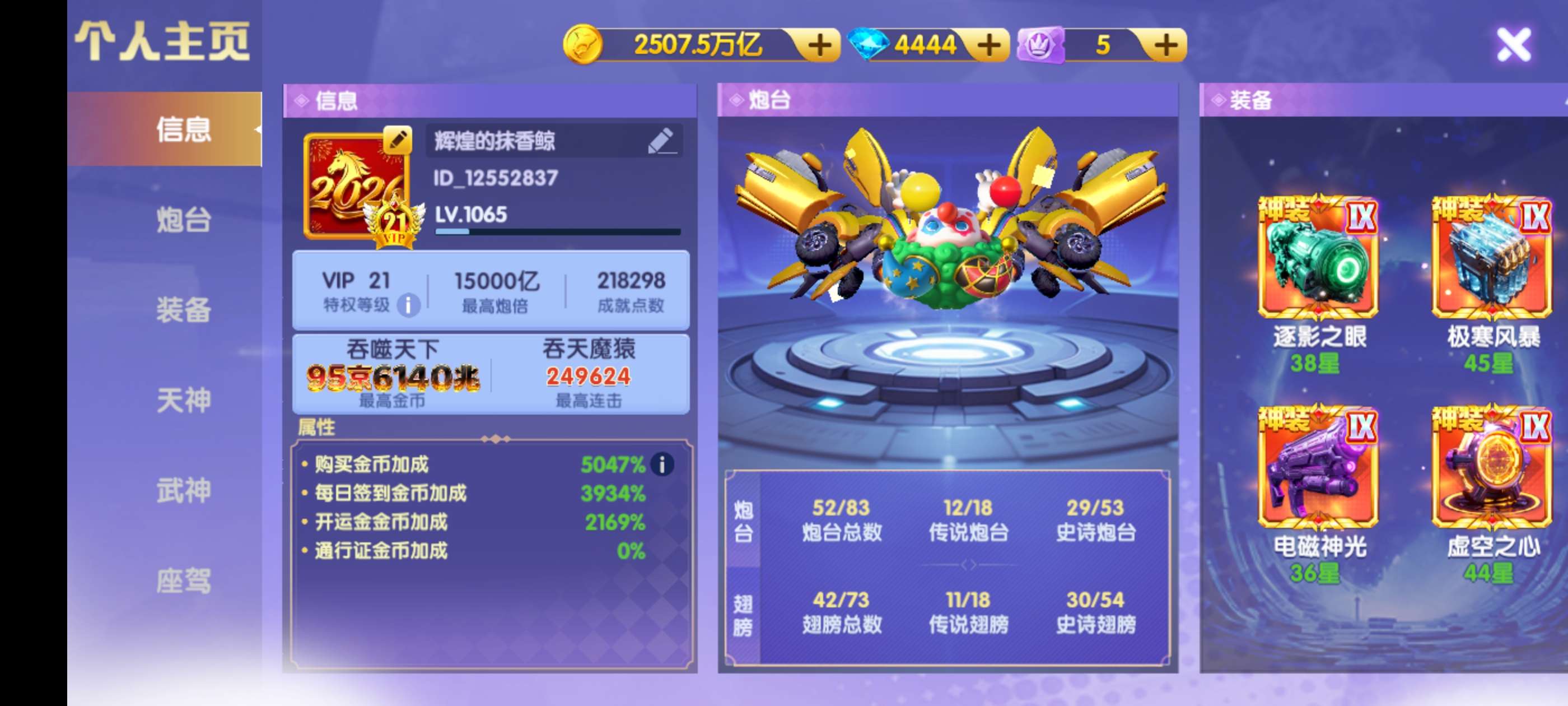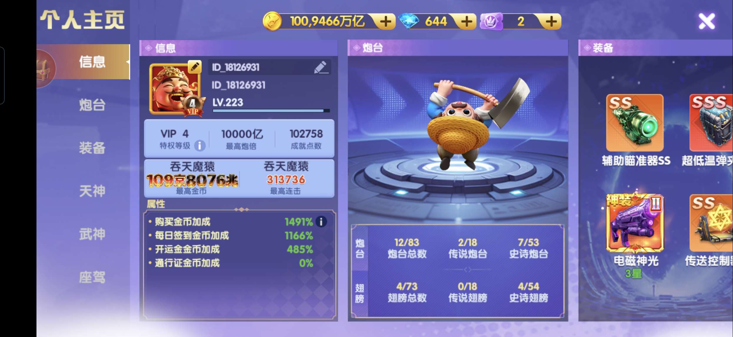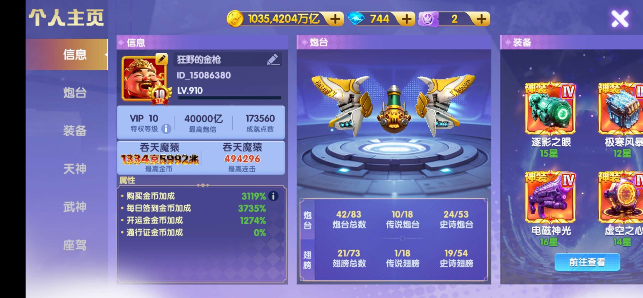 鱼乐达人v21,天神10200,武神258星 装备详情看图