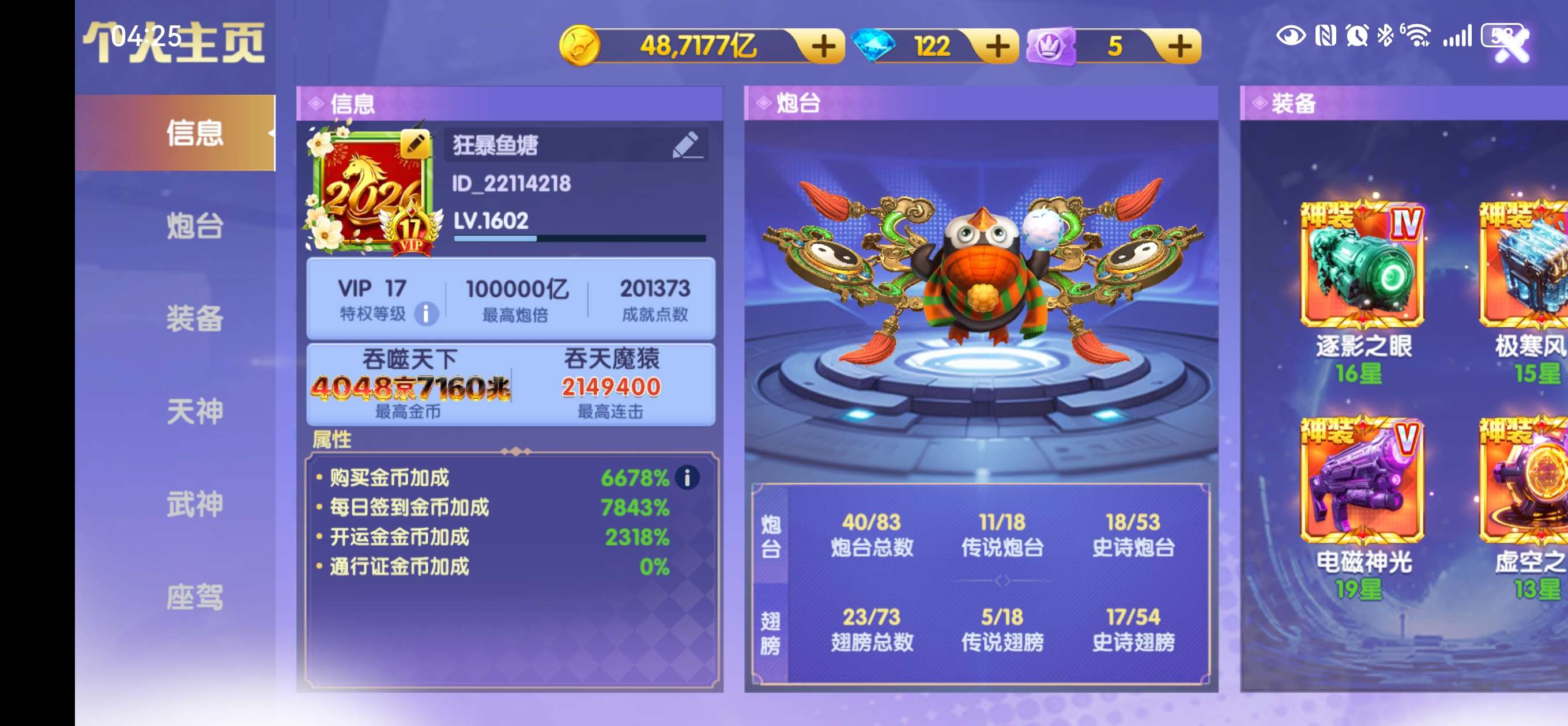 小米买断 1.5万炮 13⭐️神电12⭐️召唤3级洪荒 2⭐️觉醒天王 2个座驾 51武神