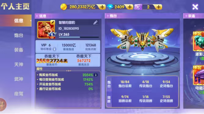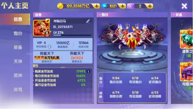 两万五炮,天神洪荒觉醒羁绊座驾都有,随便充点就能爆