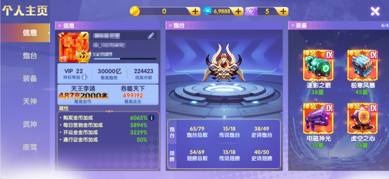 官方手机号 可换绑 顶配v20 加成4801 满神装 满天神 满星三姐妹 机甲羁绊 至尊羁绊 准满武神 满座驾 三返点 资源多