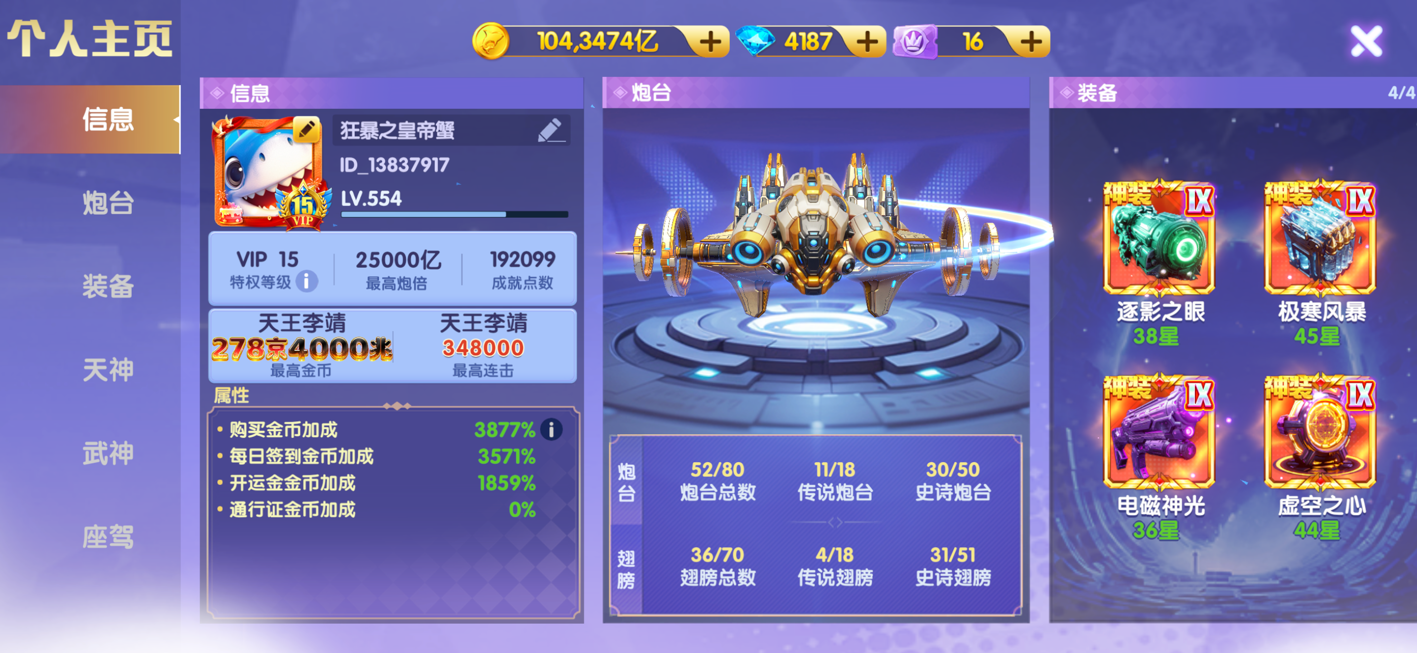 手机登录可换绑 带一手资料 V22 3万亿炮倍 加成6065 签到加成5894