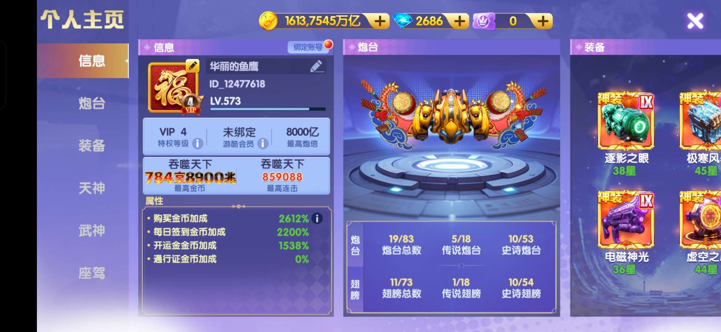 官服(手机登陆/可换绑)V25-11455加成-超神3-10彩天神带6星5福-2个返点翅膀-武神强力