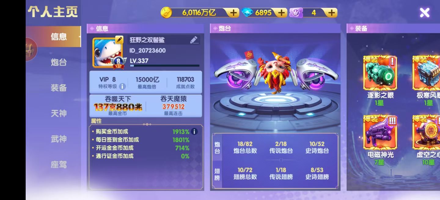 鱼乐达人小米版本精品号1143京买断,2.5万炮,天王九尾觉醒,8开头换绑一切,详情看图,信誉可查。