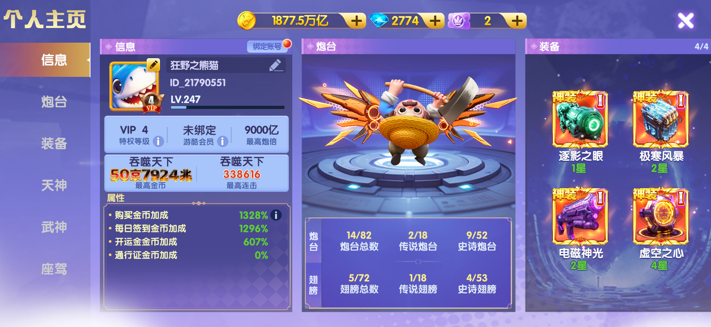 小米版3.5出2回。可纯玩基本都是20000炮带羁绊4荒最高3万基础炮每天10-100京大量有高分