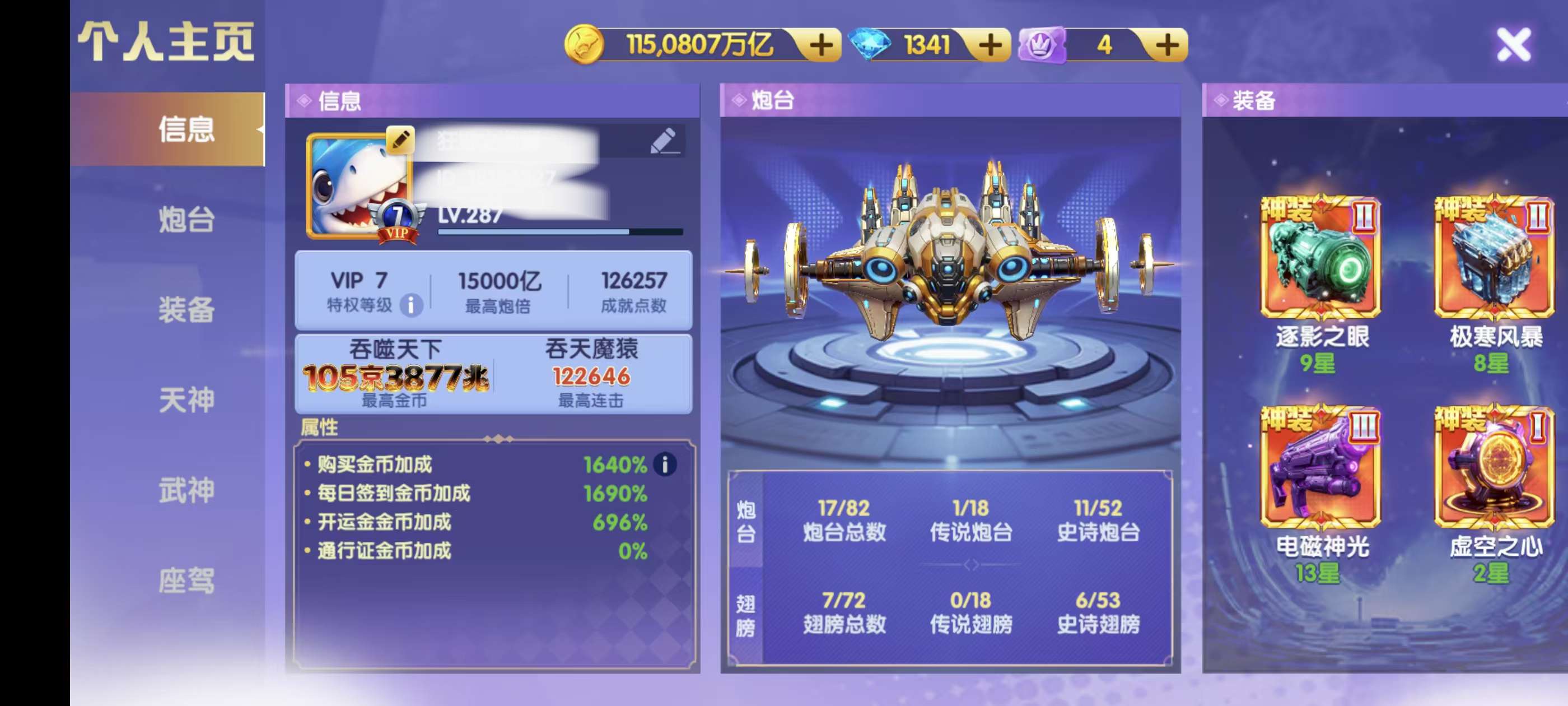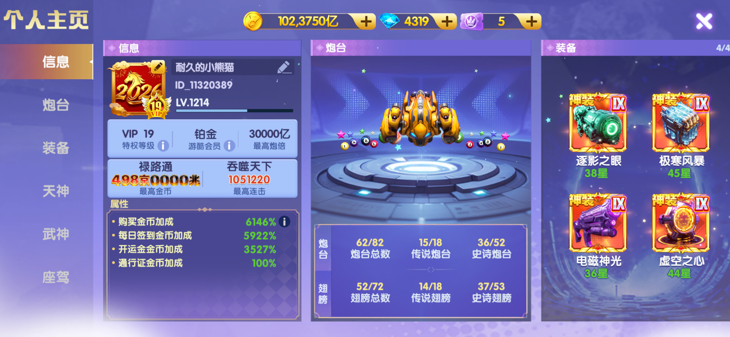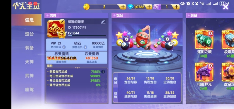 官方QQ 顶配21 八万炮 加成7185 天神满 五福6 全羁绊6星+ 10武神满星,满座驾