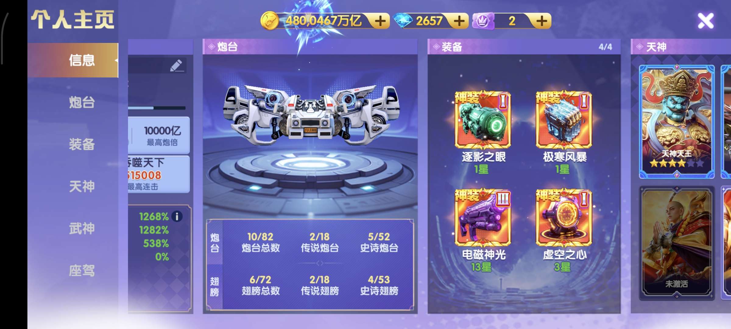 小米260兆神装,1.5万炮神装,天王6星,洪荒三级西游羁绊,9武神连击900优惠出