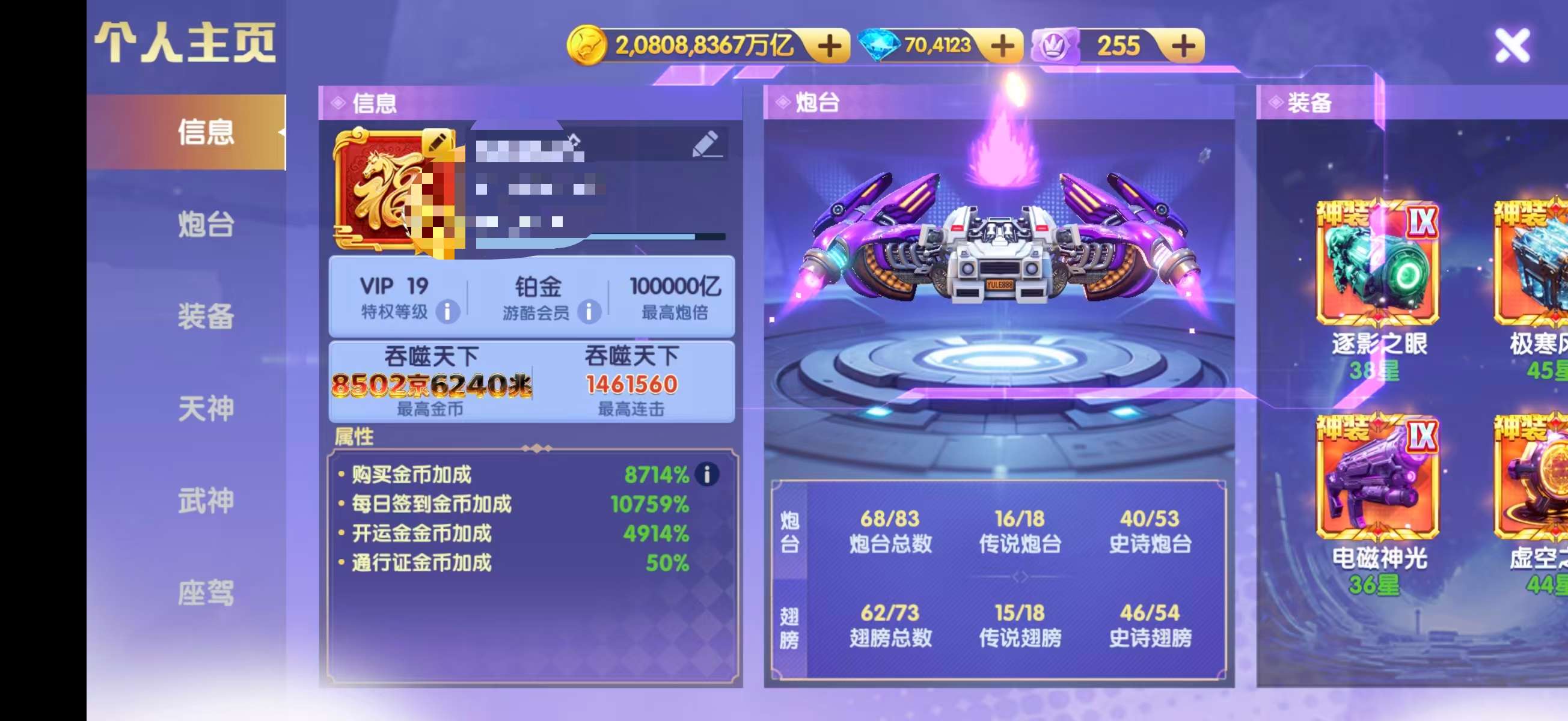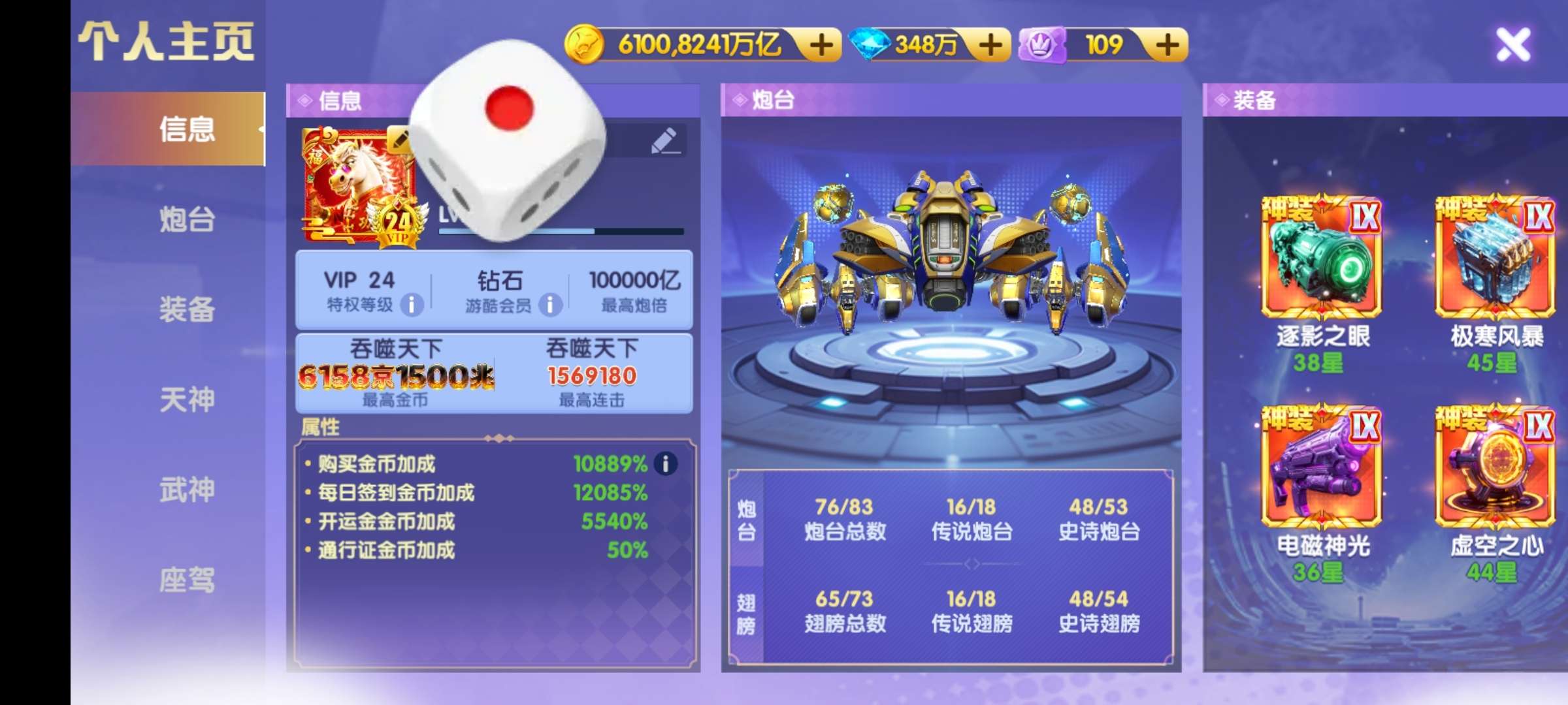 安卓小米100京买断共鸣31星天神533基础炮1.5炮,,加成1690,还可以换个武神,全部可以换绑