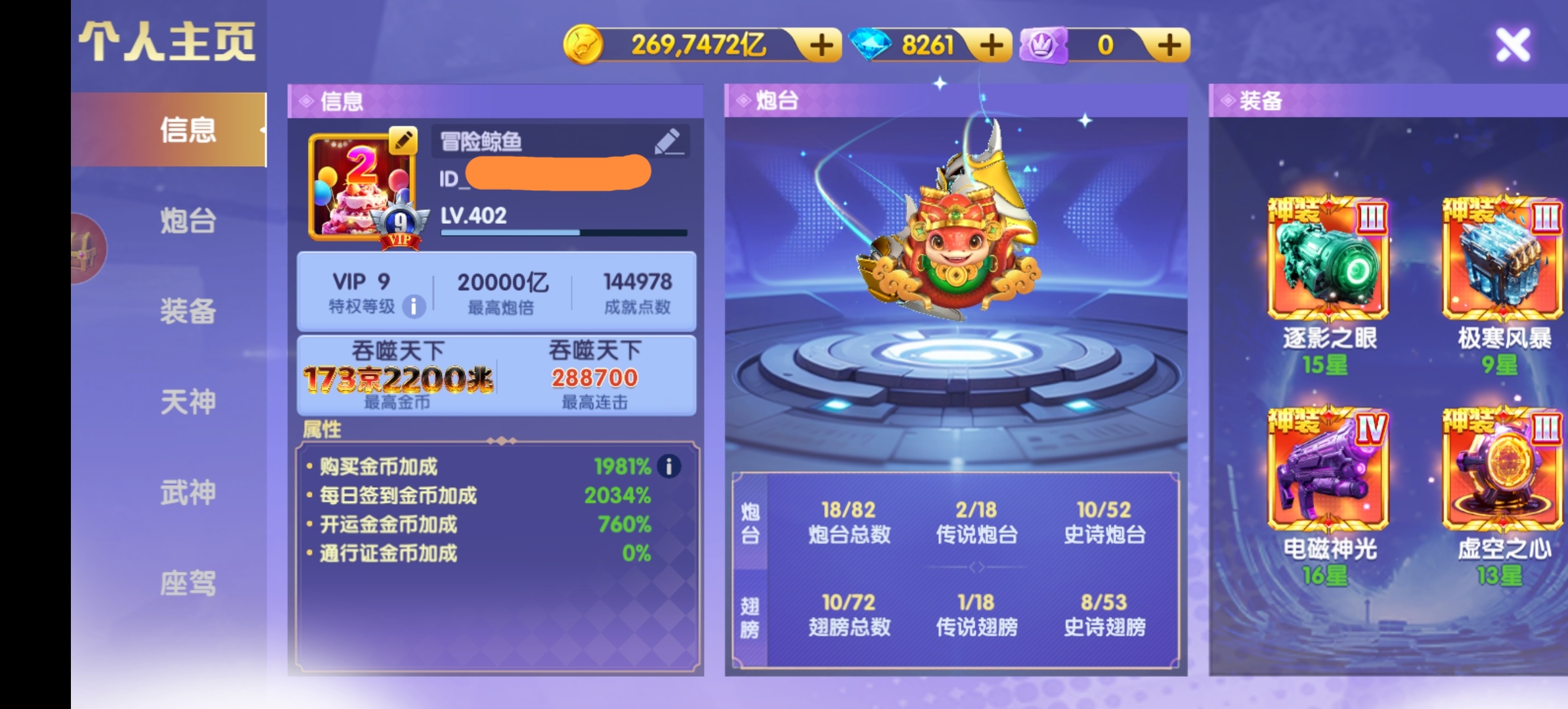 精品v9破产号:2万炮,全神电16星,天神444三荒西游羁绊,武神1500连击,双座驾,8开安全换绑