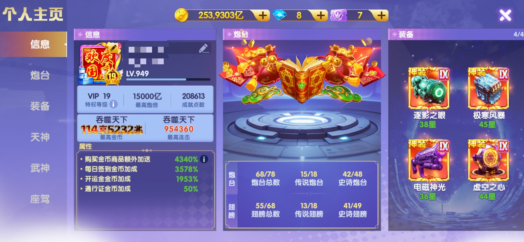 鱼乐达人官方手机号登录V17加成4353羁绊基本都开了,其余看图,有手持可换绑