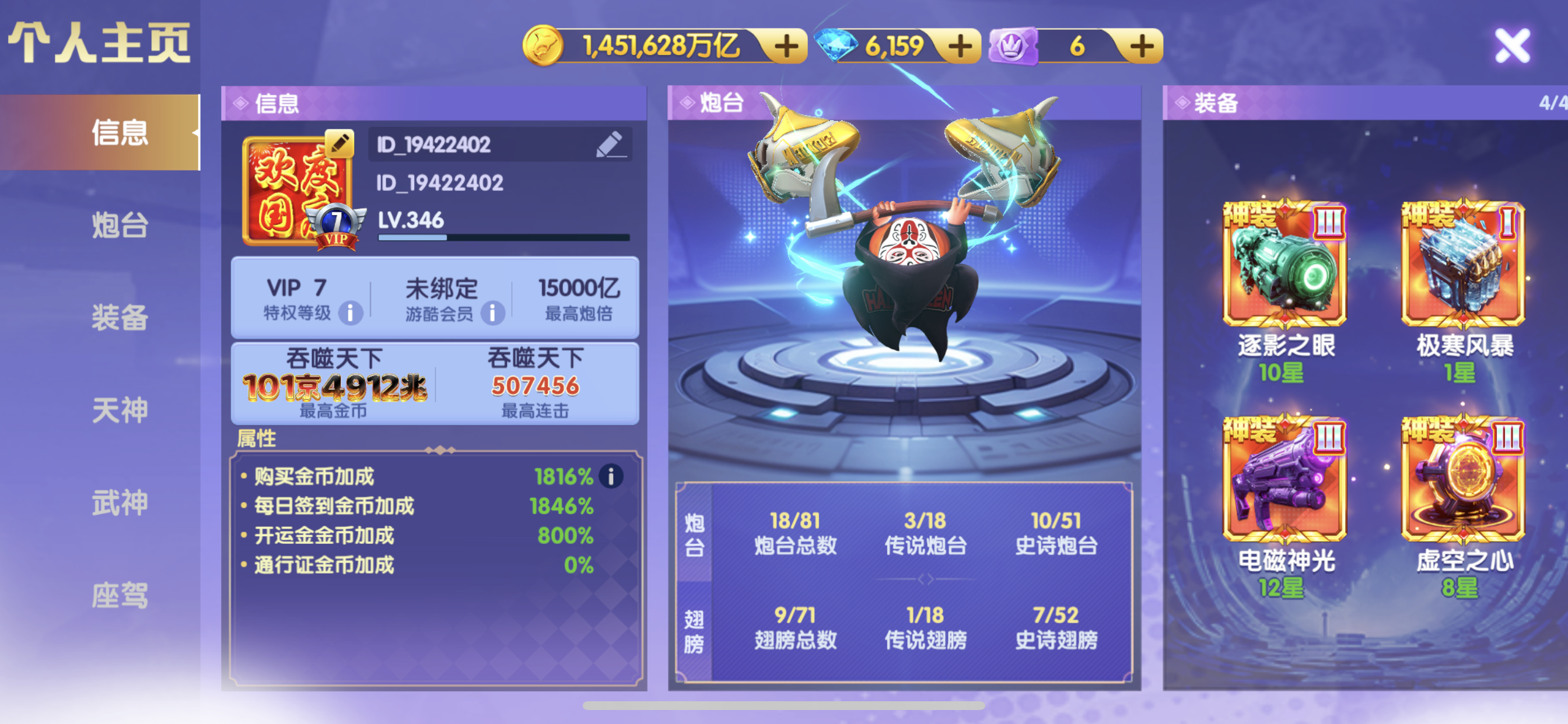官方Q v14 2969加成 1.5万炮 17武神 细节看图 感兴趣咨询