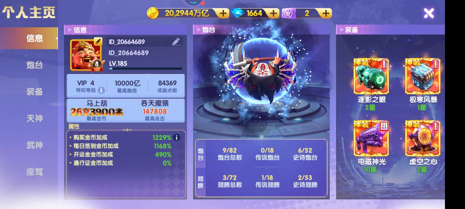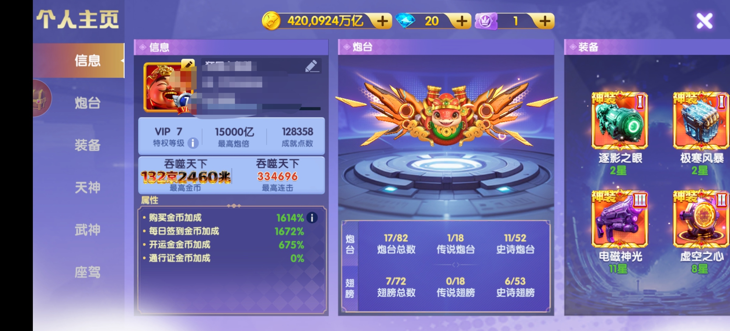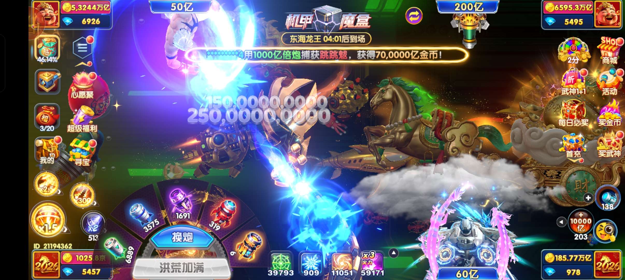 鱼乐达人小米20京四神装万炮,三洪荒一千二百斩,天王差个水晶五星,