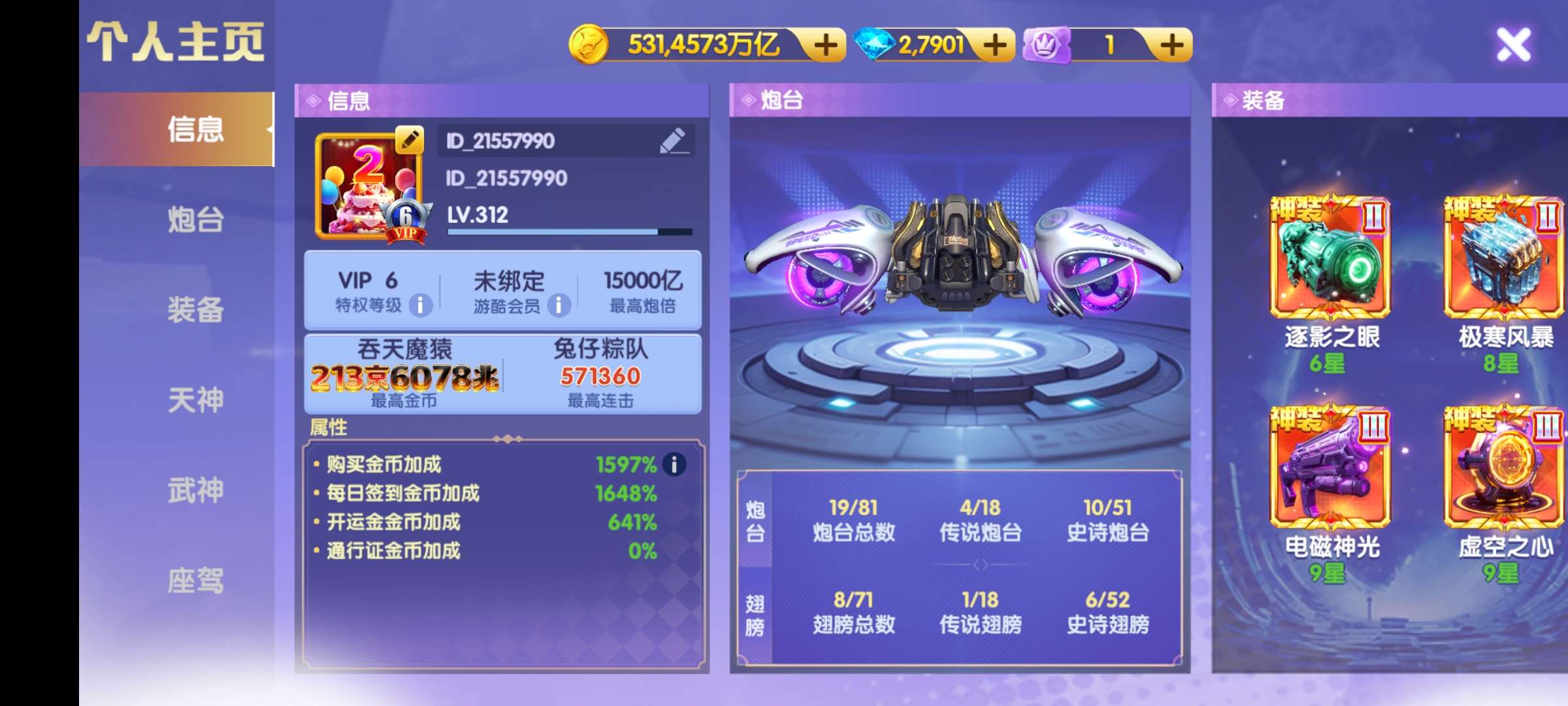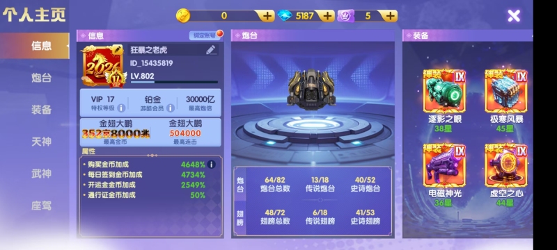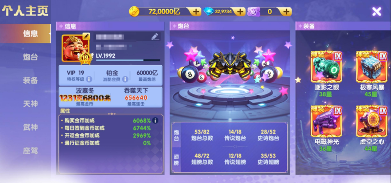 官方手机号 可换绑 v19 5912加成 4万炮倍 40武神 8座驾 2.1生日礼包 感兴趣咨询