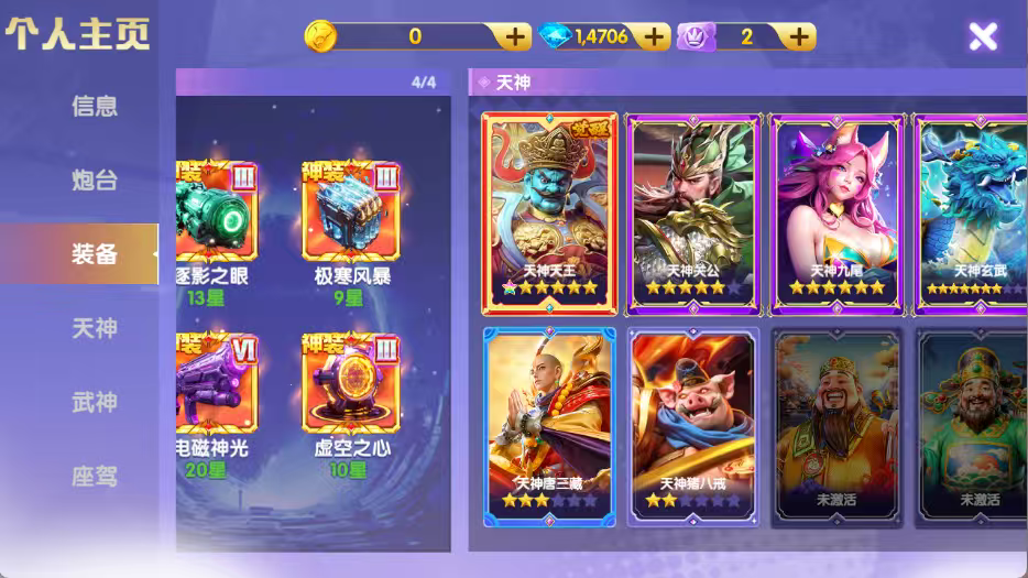 买断100京神装洪荒3级武神32星秒换绑编号36