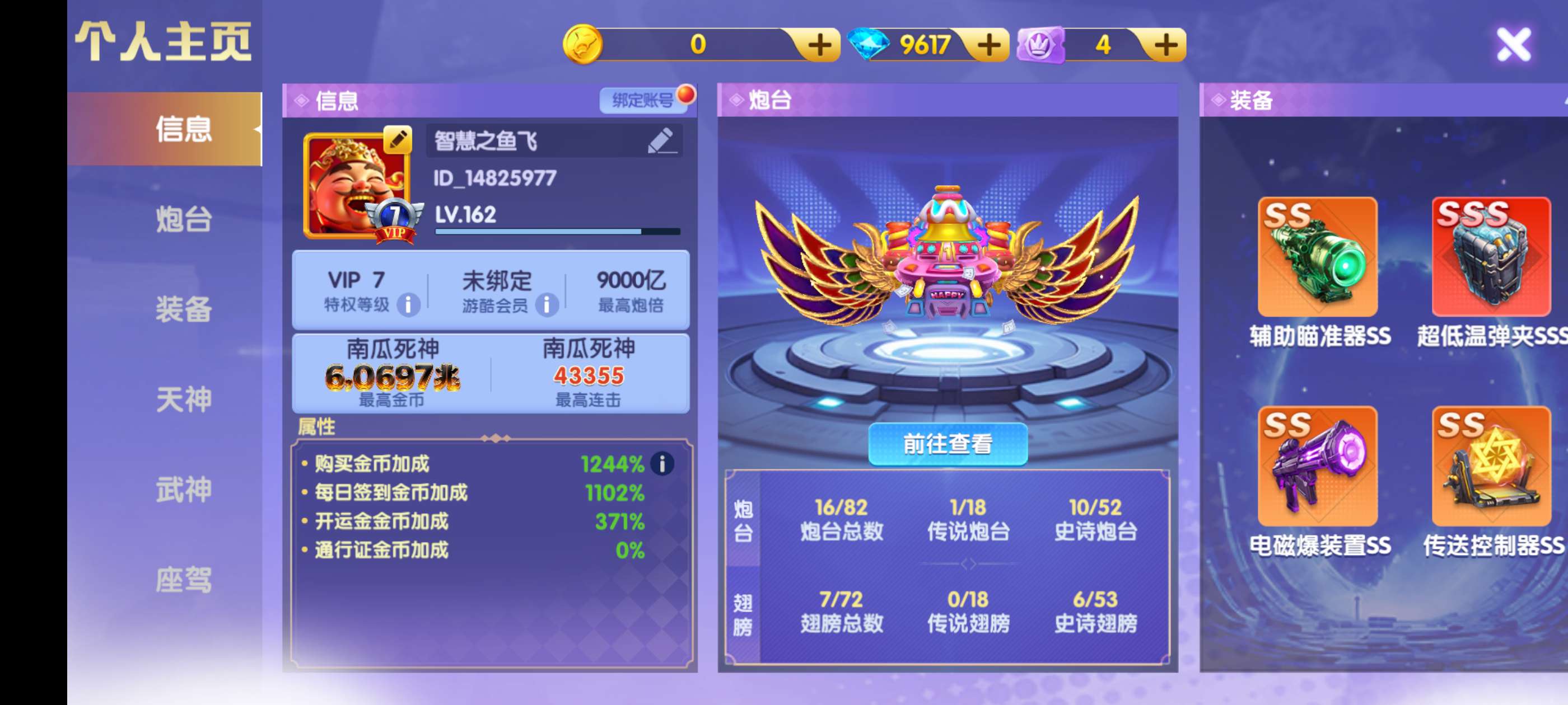 鱼乐达人官方版本出租,2000京,高V高配置高爆发号,炸弹,钓鱼,海神奖全部送