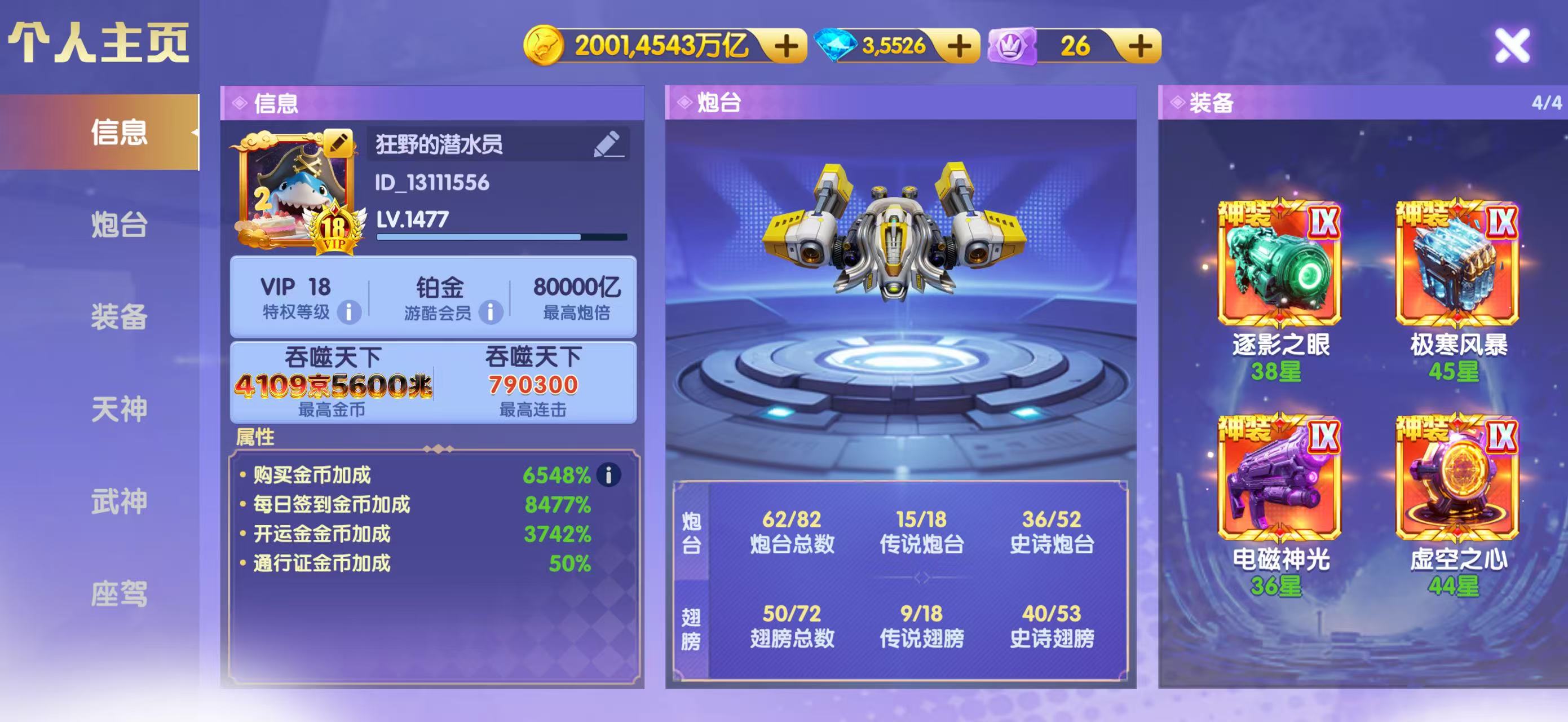 小米版3.5出2回。可纯玩基本都是20000炮带羁绊4荒最高3万基础炮每天10-100京大量有高分