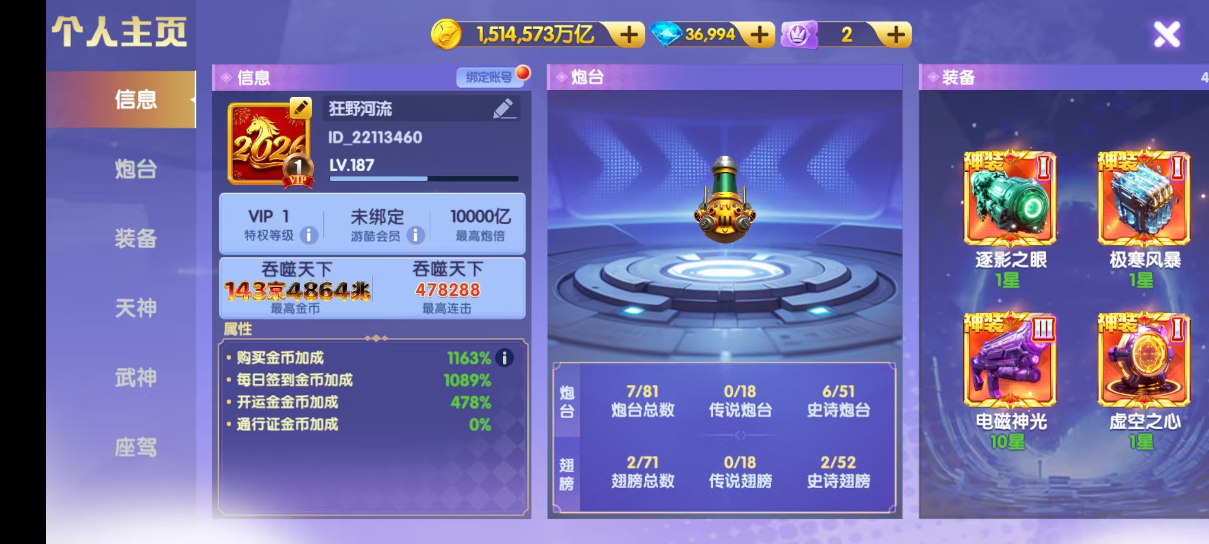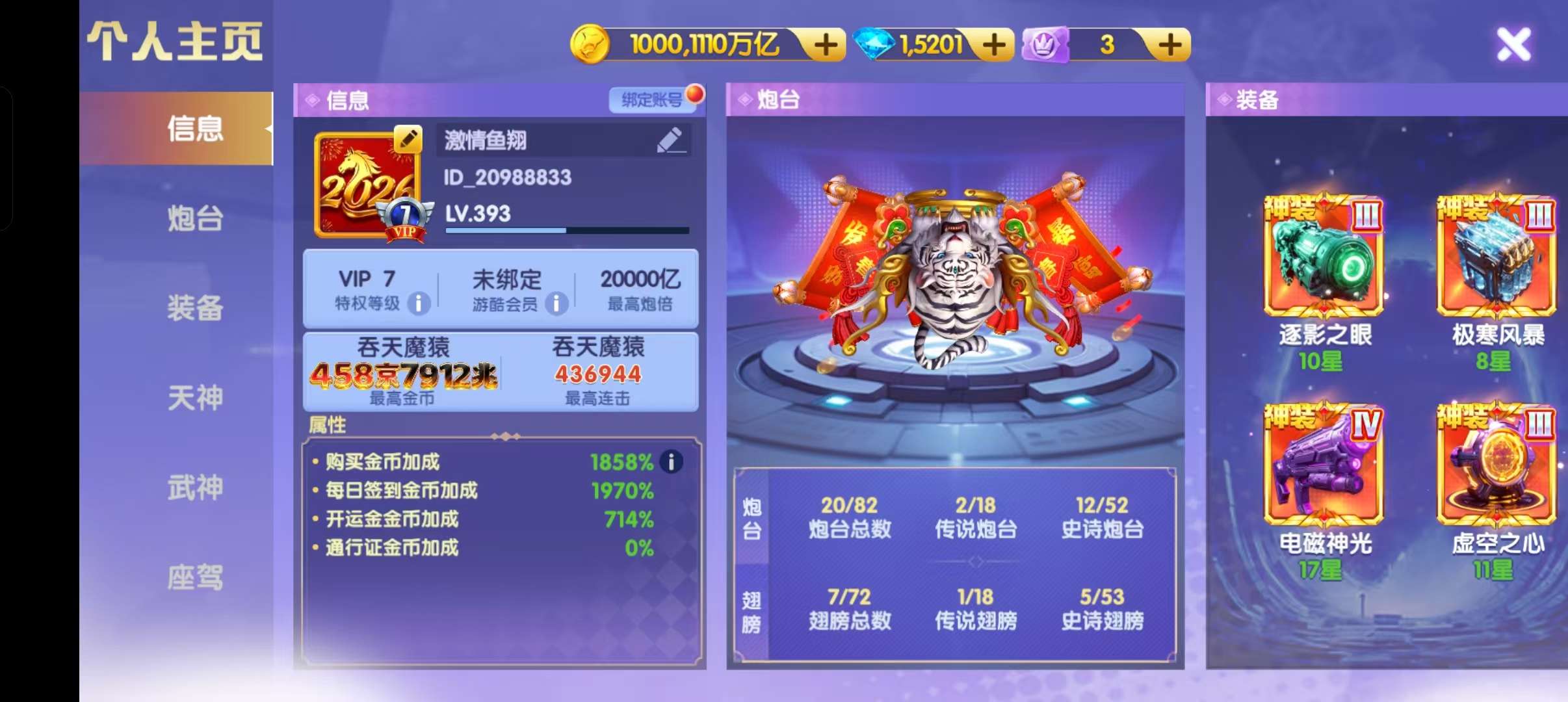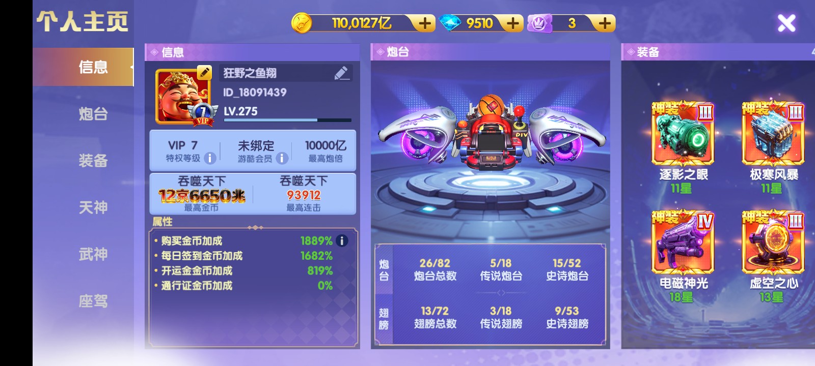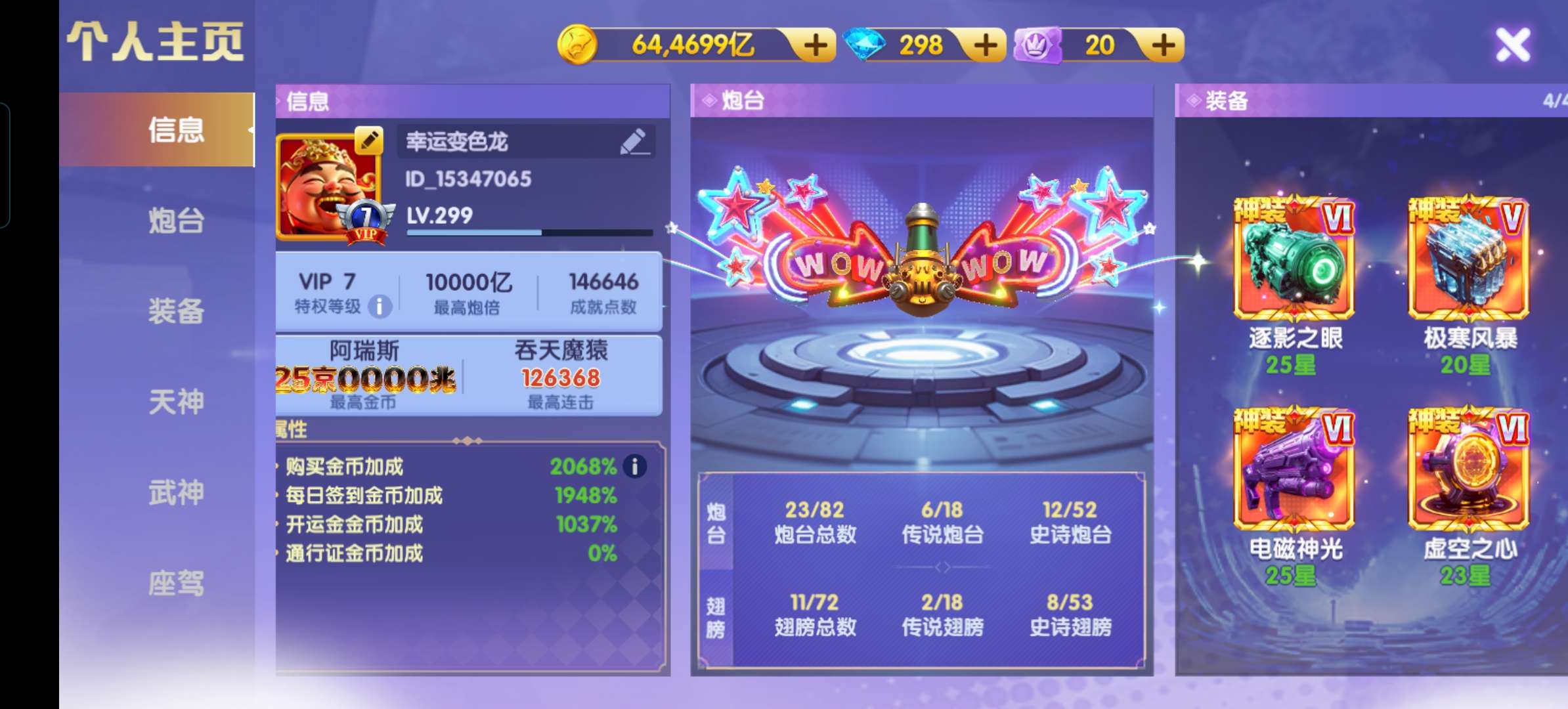 鱼乐达人小米版低价卖断52京 全神装 神电25星15000万炮 武神1500连斩 斩 洪荒3级 天神全部上班 天王马上觉醒 资源很多,加倍卡多多