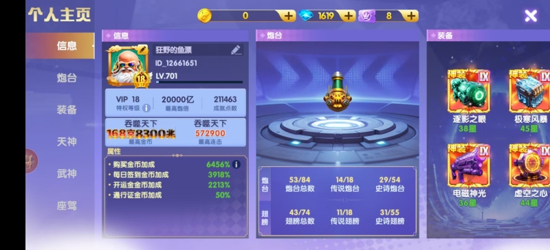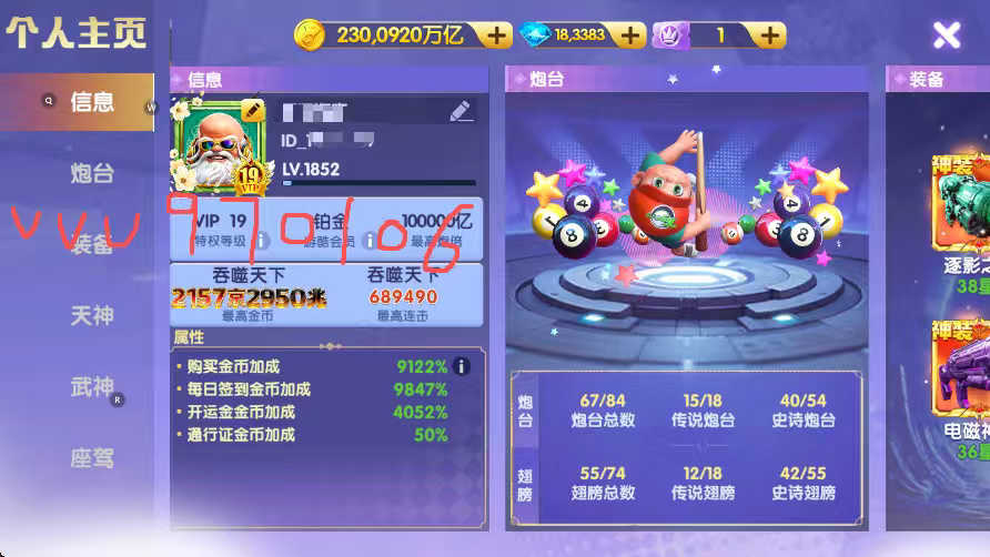 极品新q无实名:6万基础炮,满级超神套,天神12500五福全7星套,武神满连击10套羁绊,座驾满