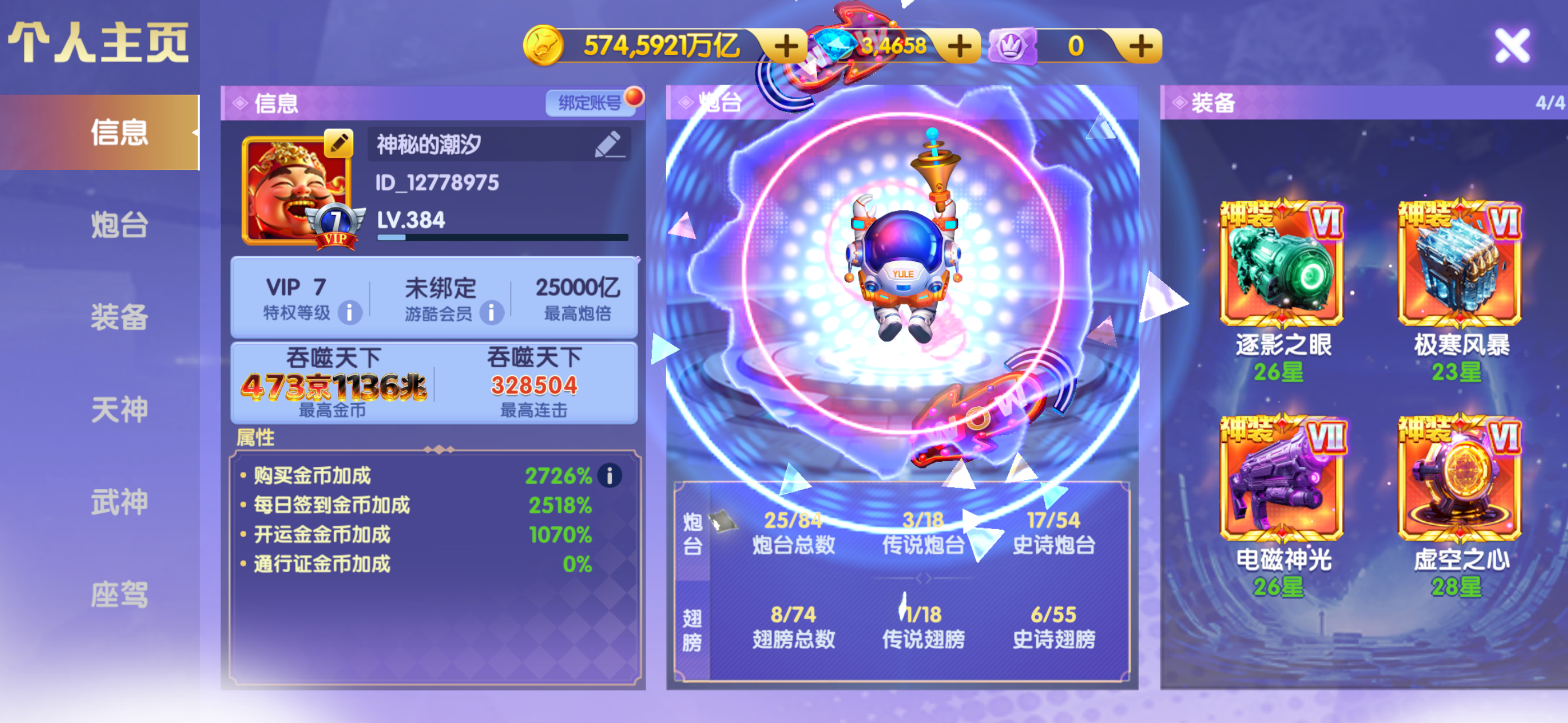 小米买断,1.5万炮 25⭐️神电20⭐️召唤全神装,3级洪荒 5⭐️天王狐狸 2个座驾 40级武神