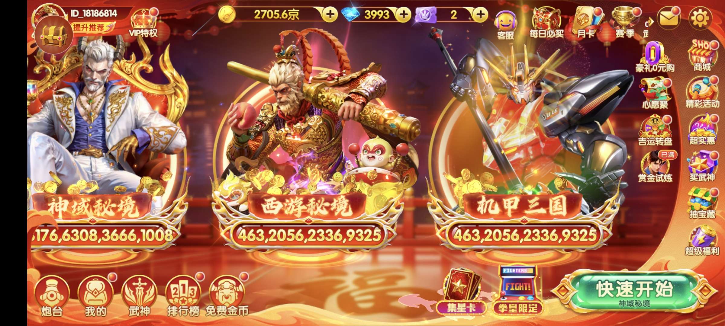 官方手机号,充值3万多,目前3万炮,三姐妹满,天王觉醒,五福三星,多套武神羁绊,急需用钱,低价甩卖