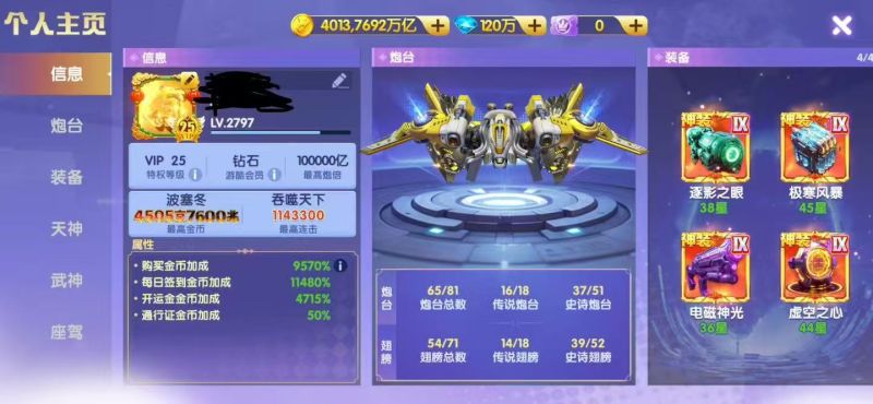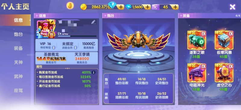 官方Q v16 4011加成 1.5万炮 32武神 8座驾 感兴趣咨询