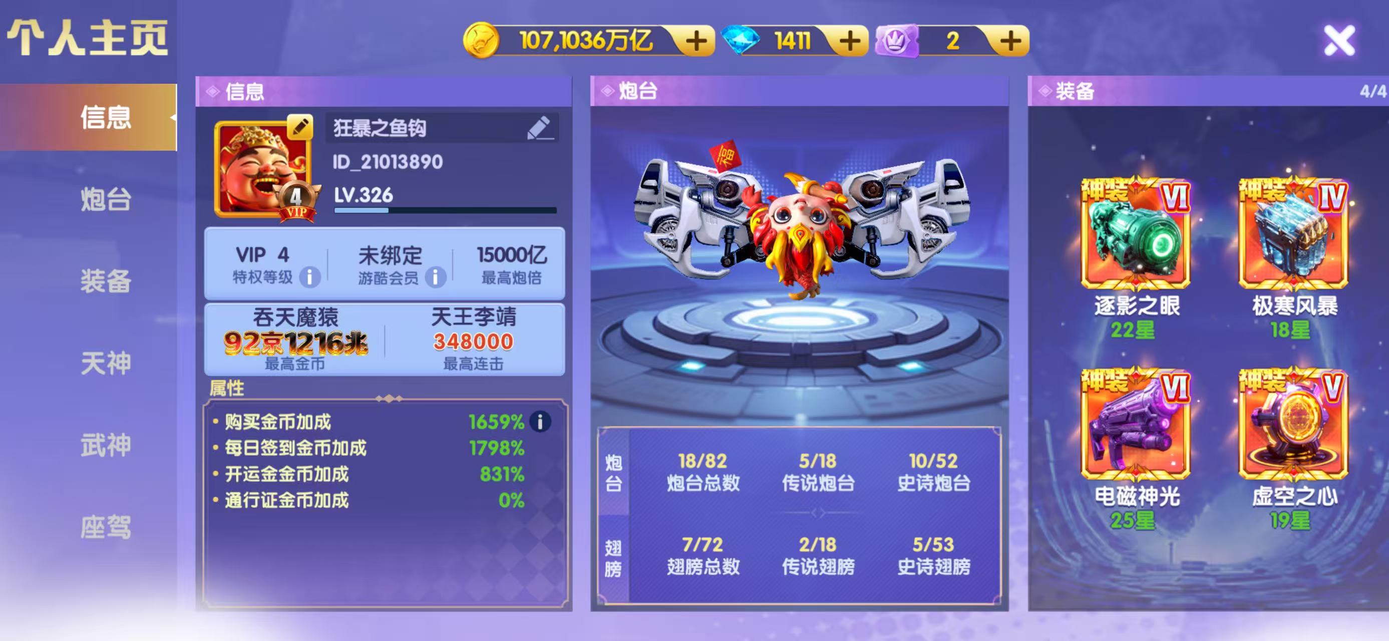 鱼乐达人官服V13,天神全,武神多多,有每日秒盯