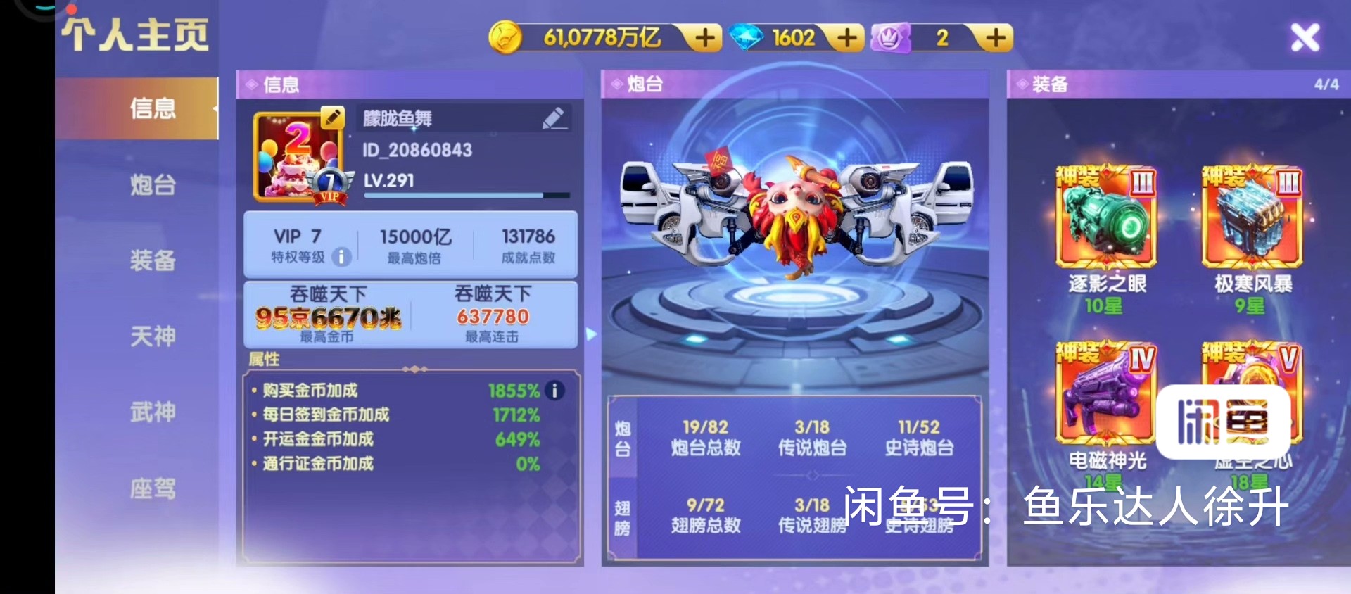 鱼乐达人小米61京女武神羁绊号买断天神544,三级洪荒,西游羁绊,武神羁绊1200斩,道具多