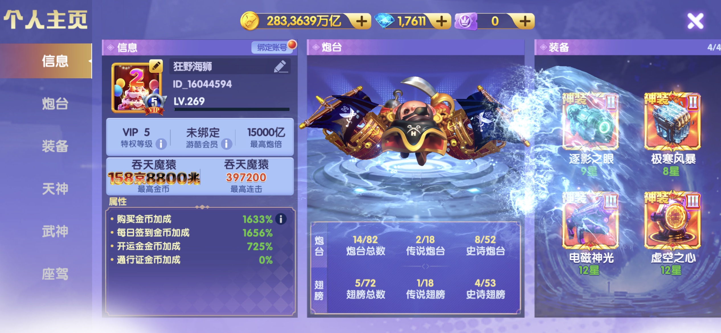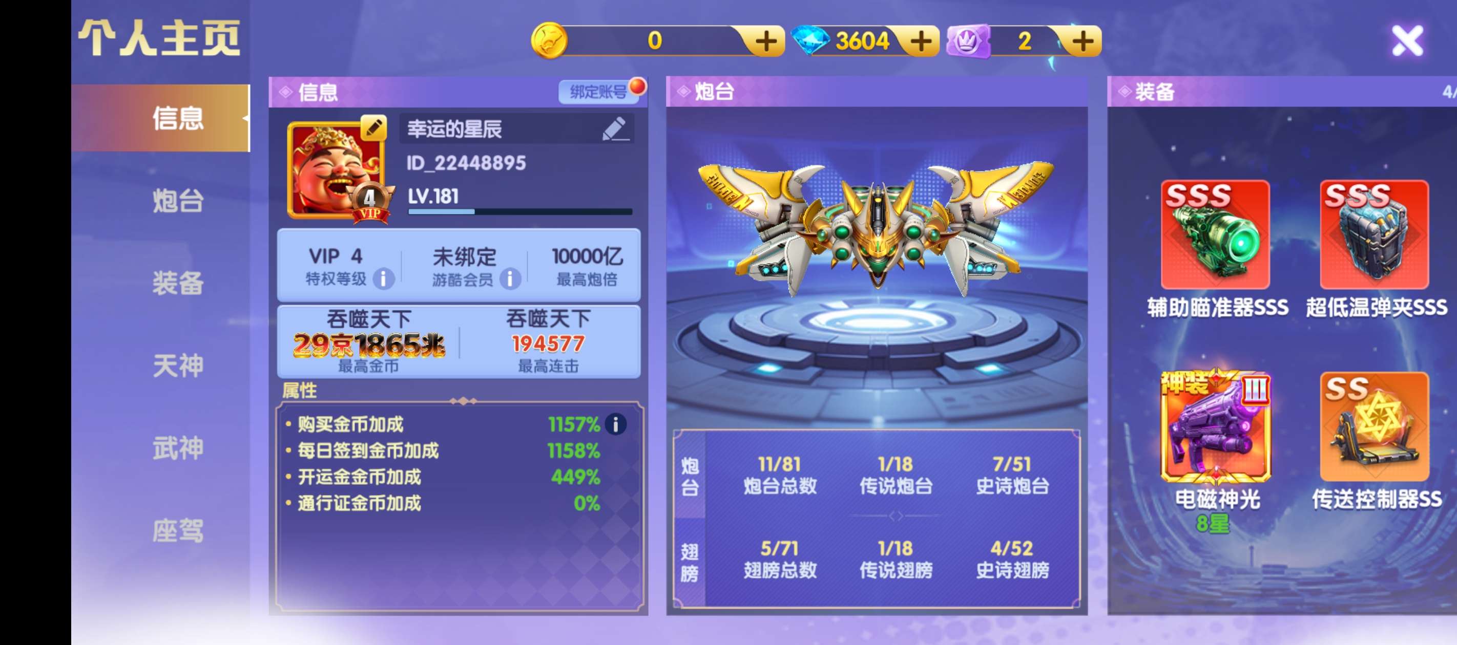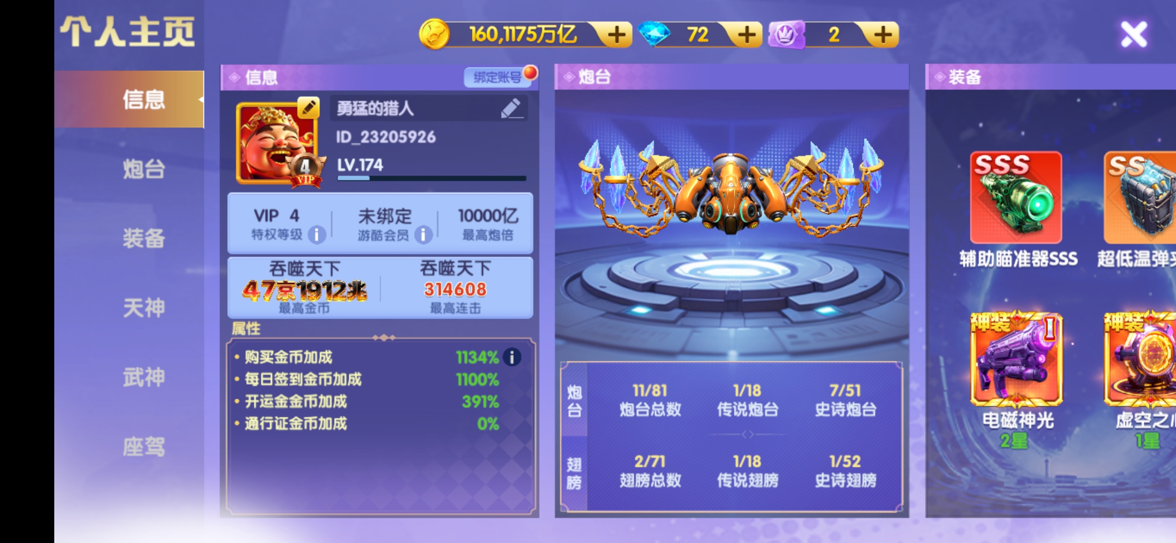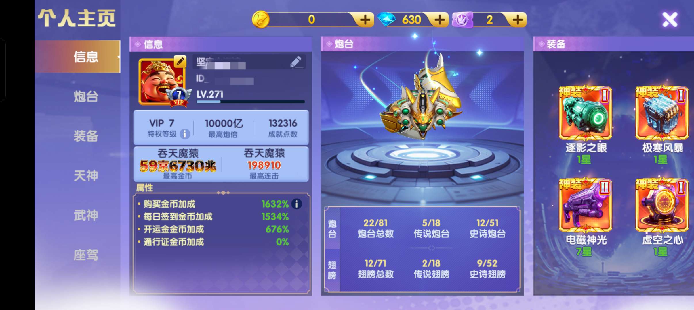 小米版材料号,带一京金币 ,7000炮,1550盲盒币,256幸运币 神电二星 可用 十五次磁暴,
