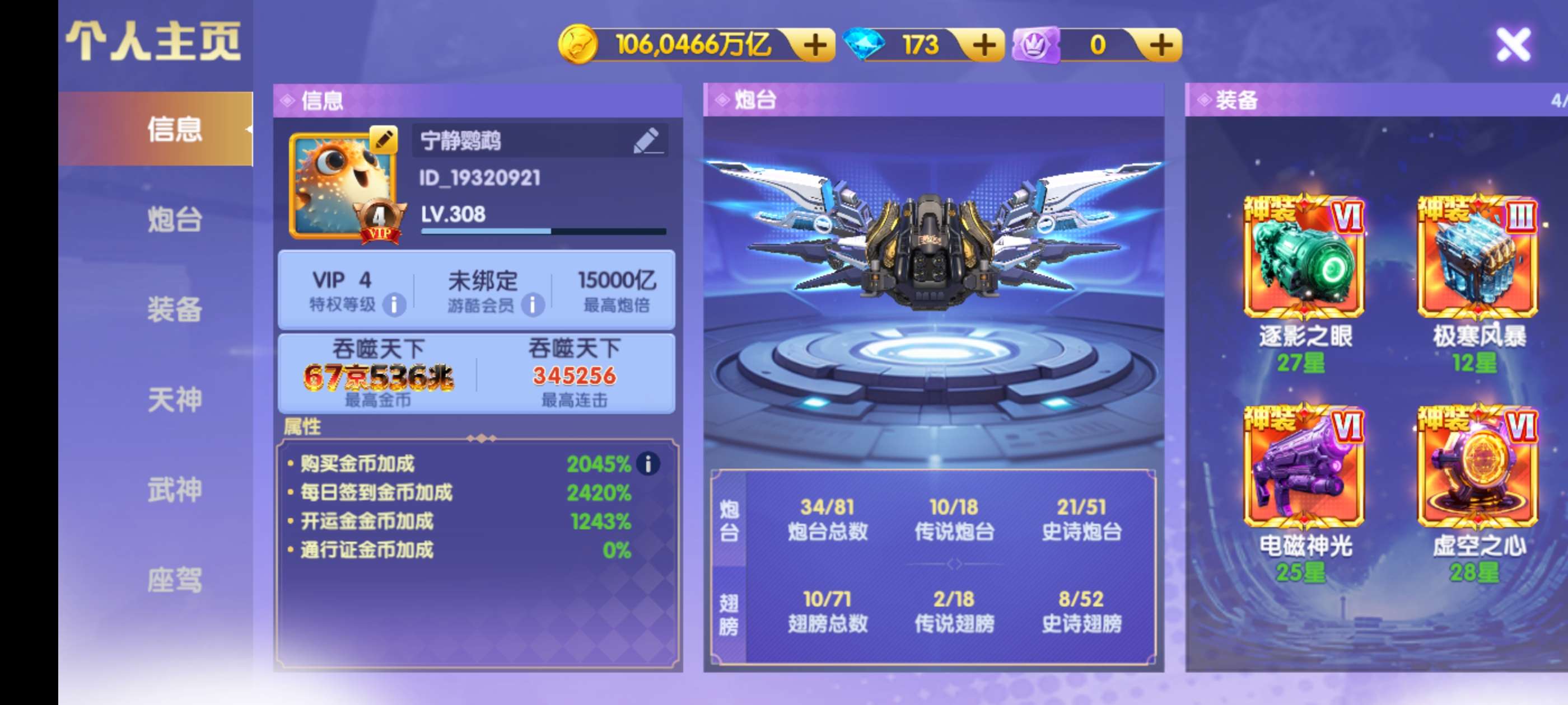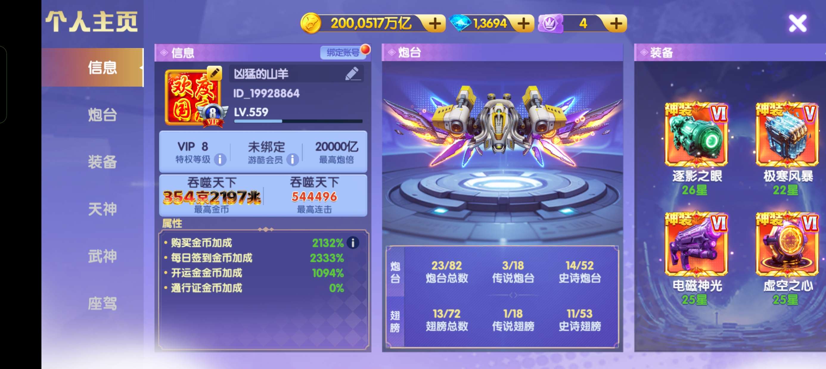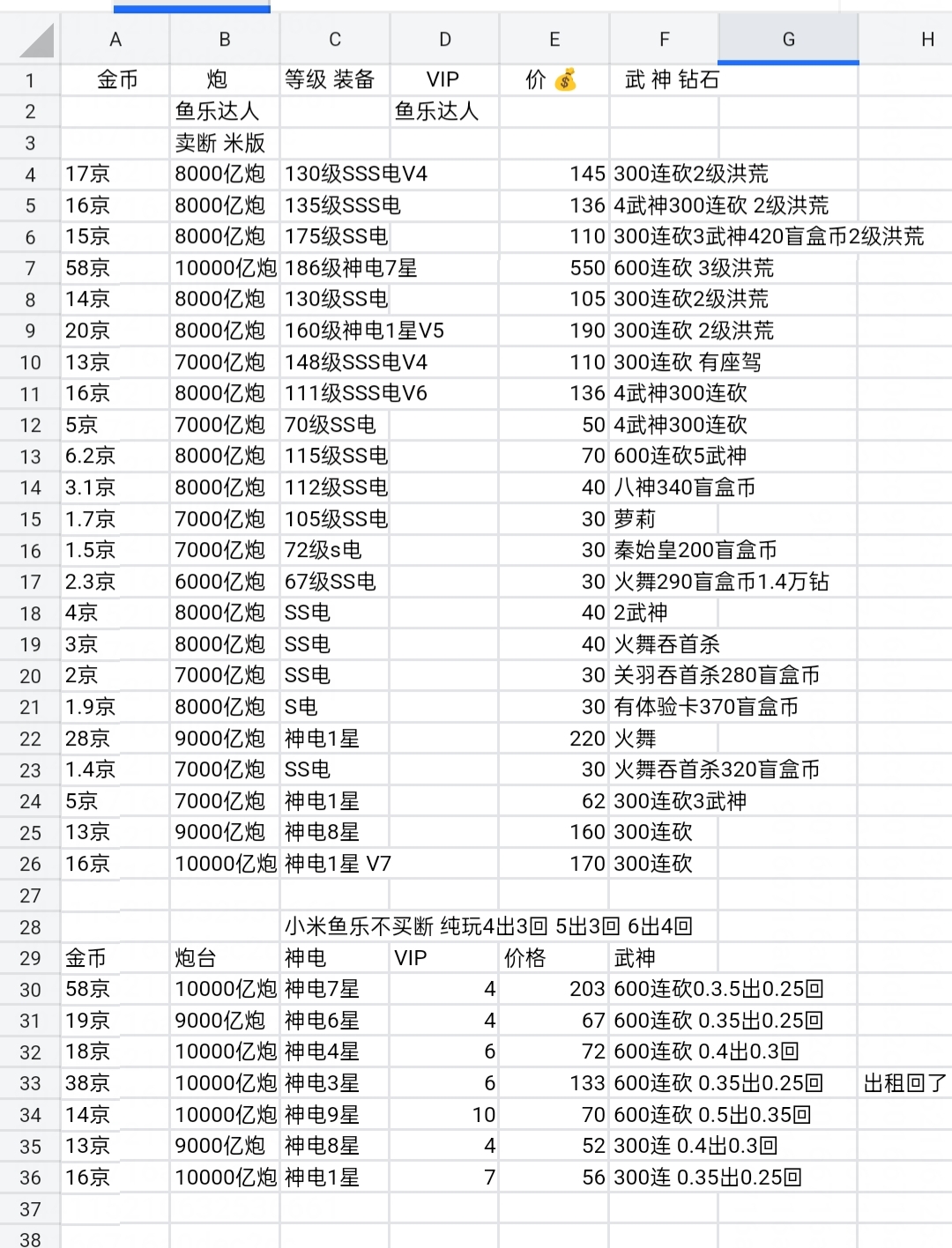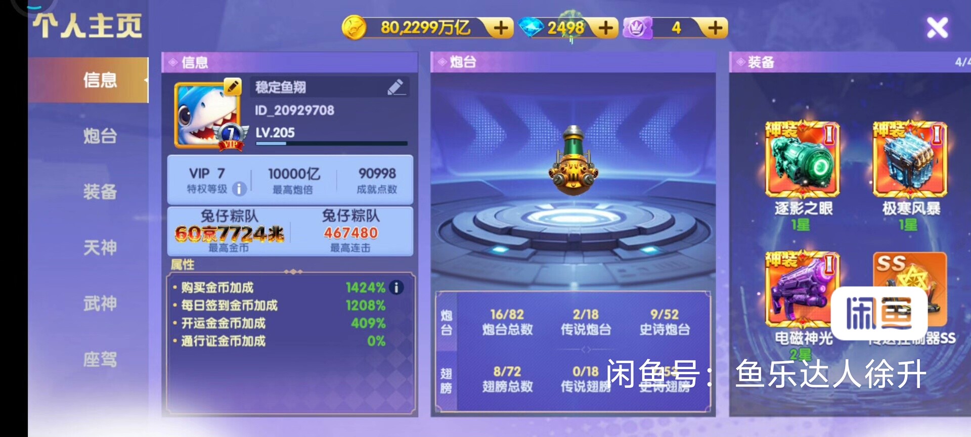 鱼乐达人小米版 神装套80京买断带号出万炮8个武神 洪荒3天神334