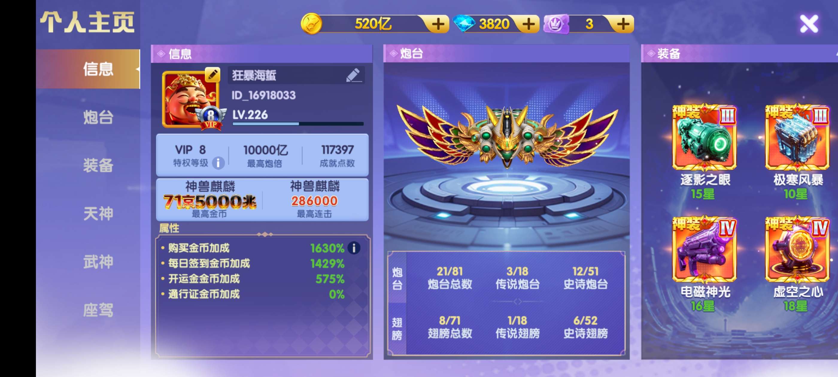 鱼乐达人小米版900京,天神全觉醒四级洪荒,两套羁绊5阶大G,3万炮准4万差加成道具多,破产高价回