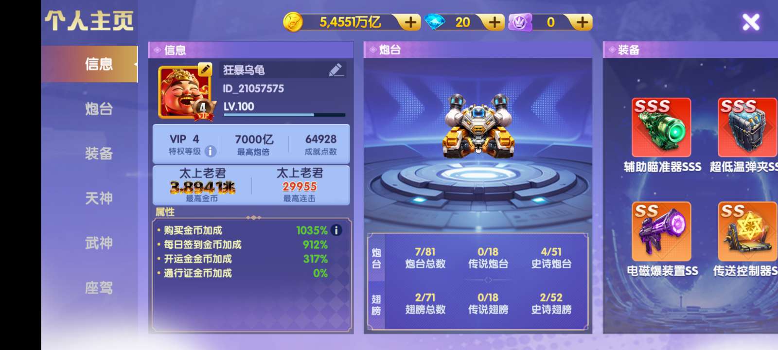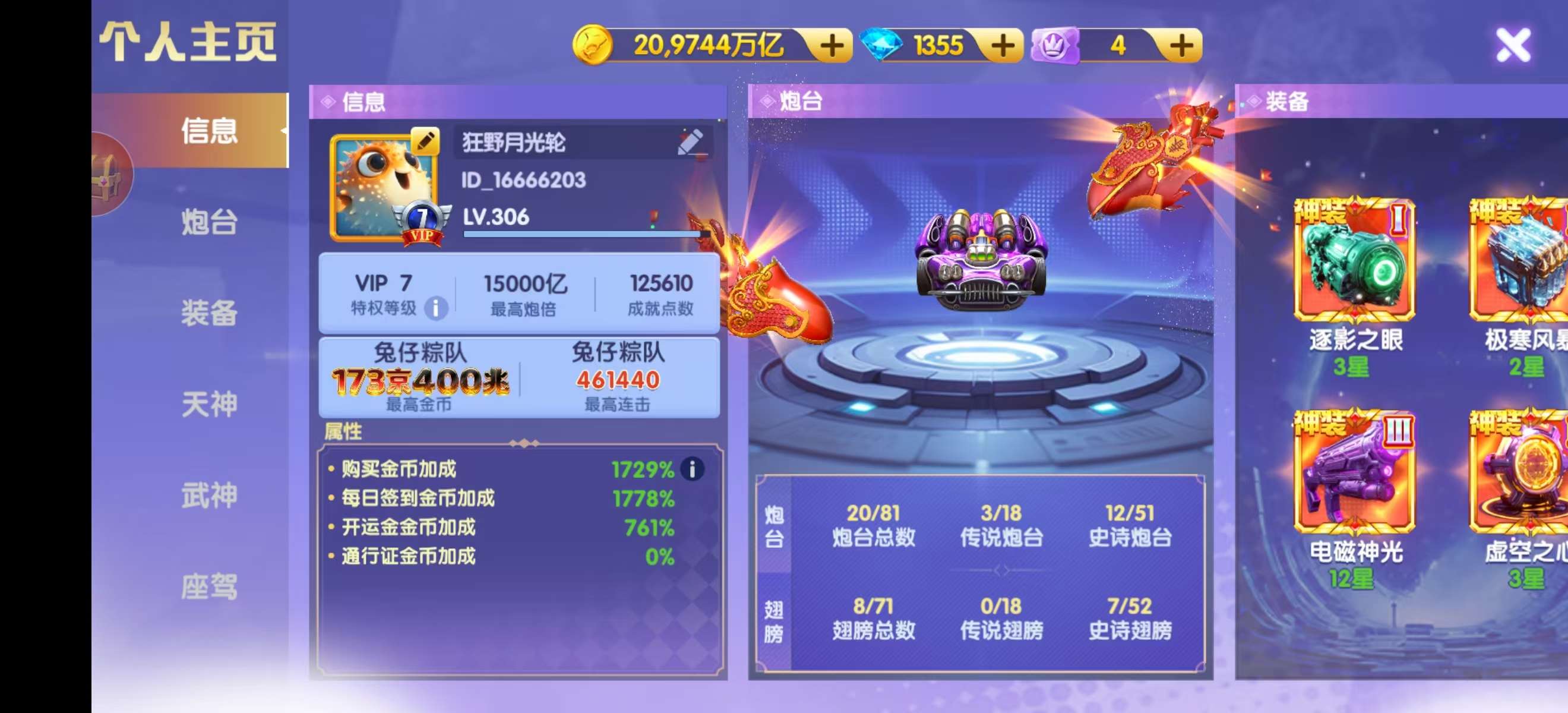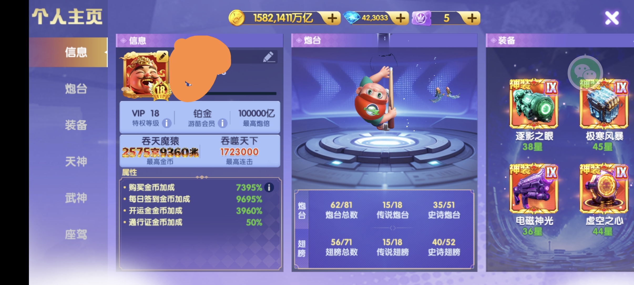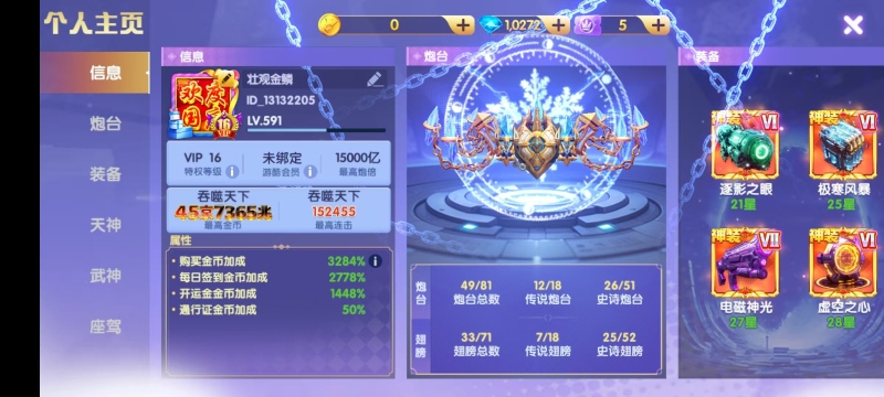 官Q-V16-3284加成-1.5万亿炮-天神觉醒-武神多-带座驾
