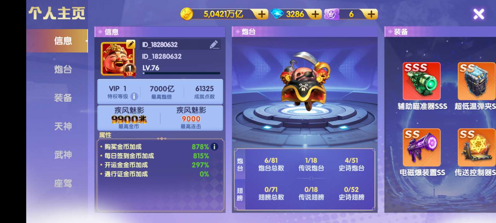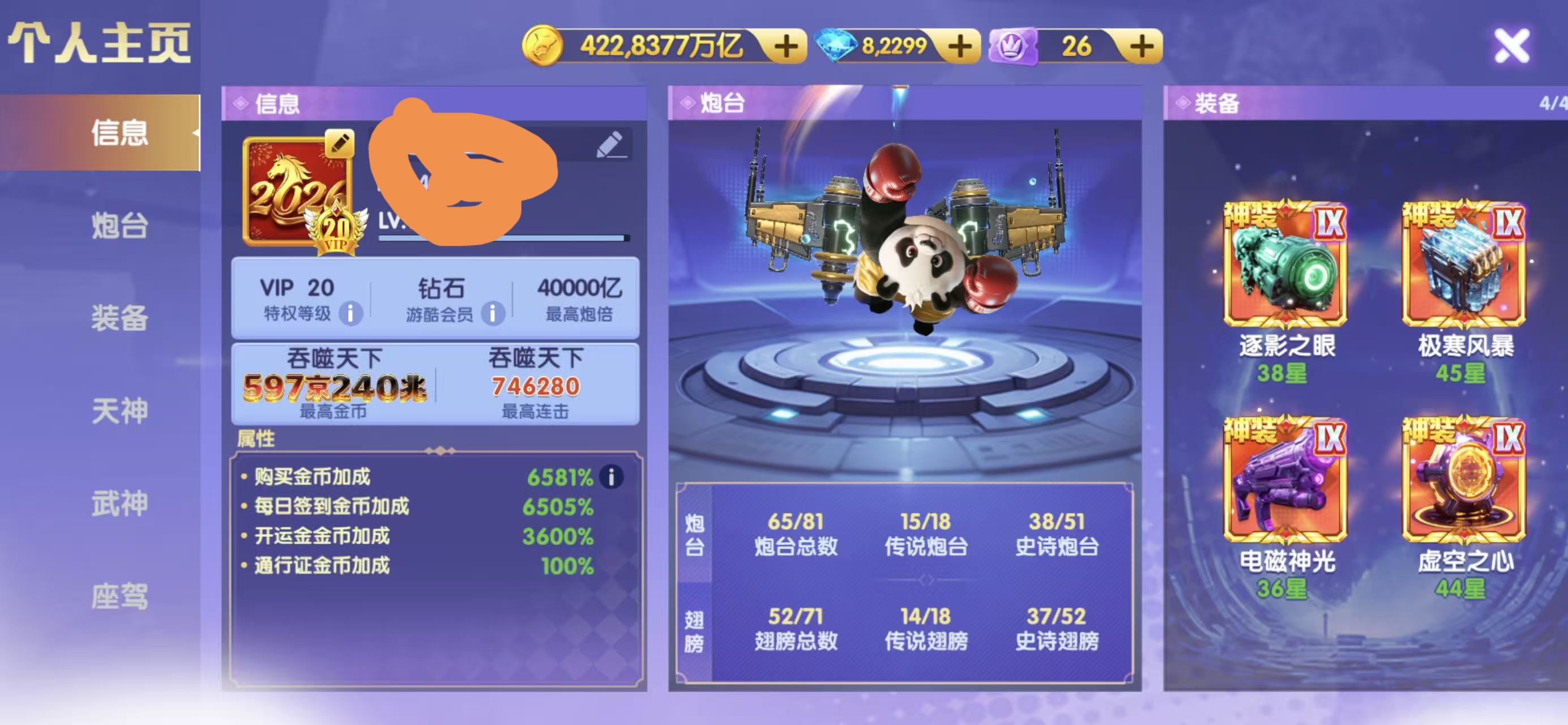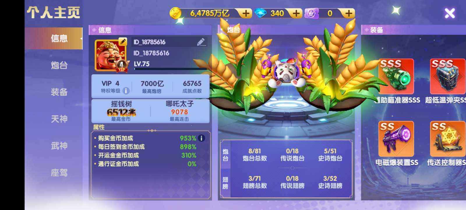 官Q-V16-3284加成-1.5万亿炮-天神觉醒-武神多-带座驾