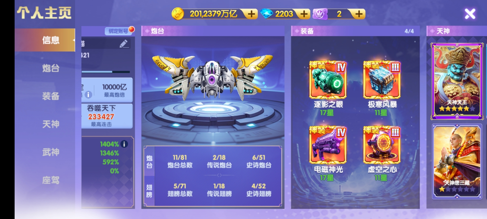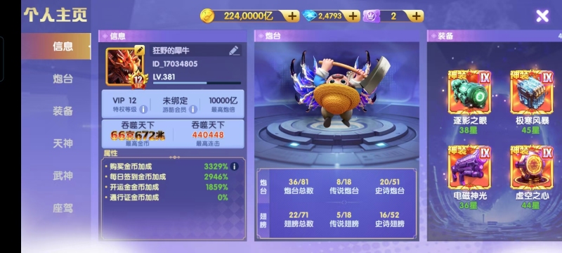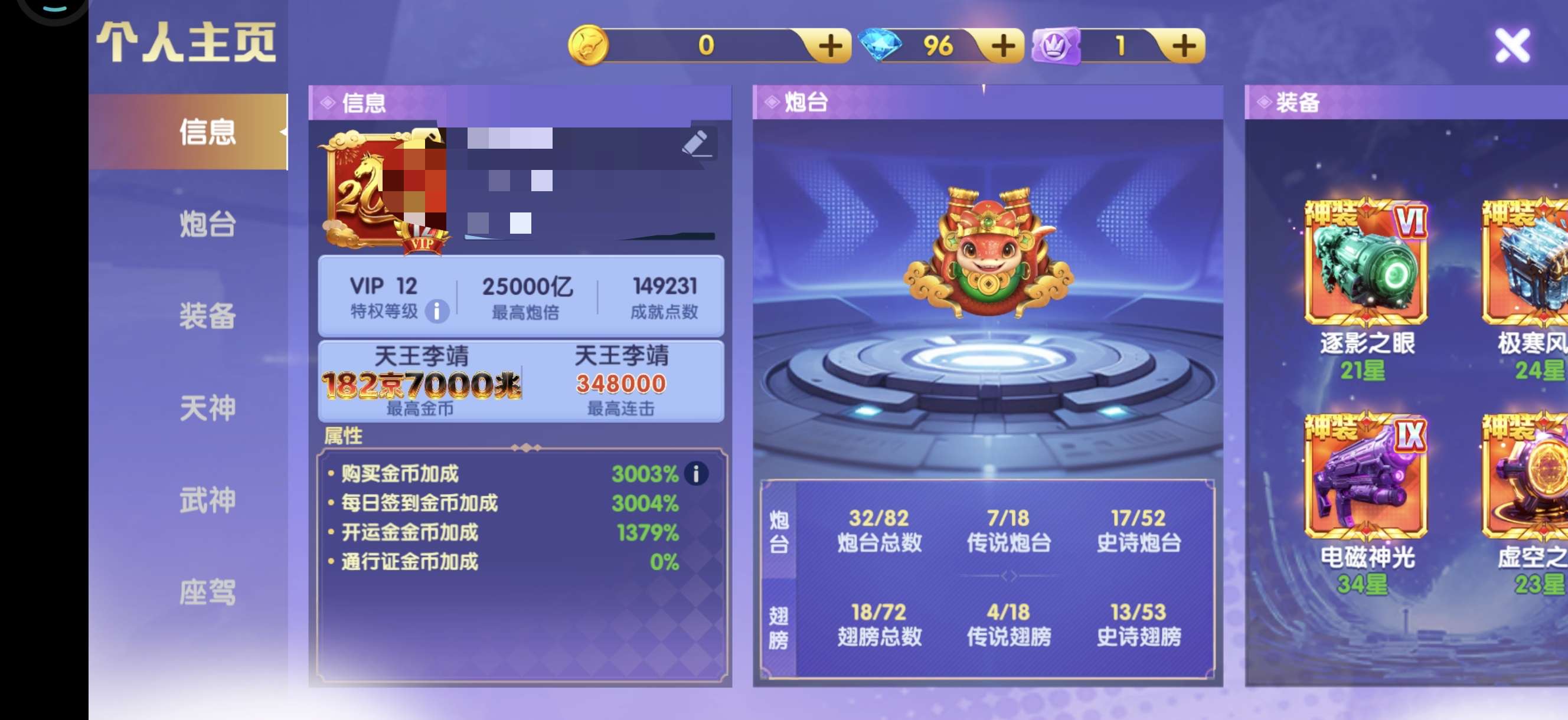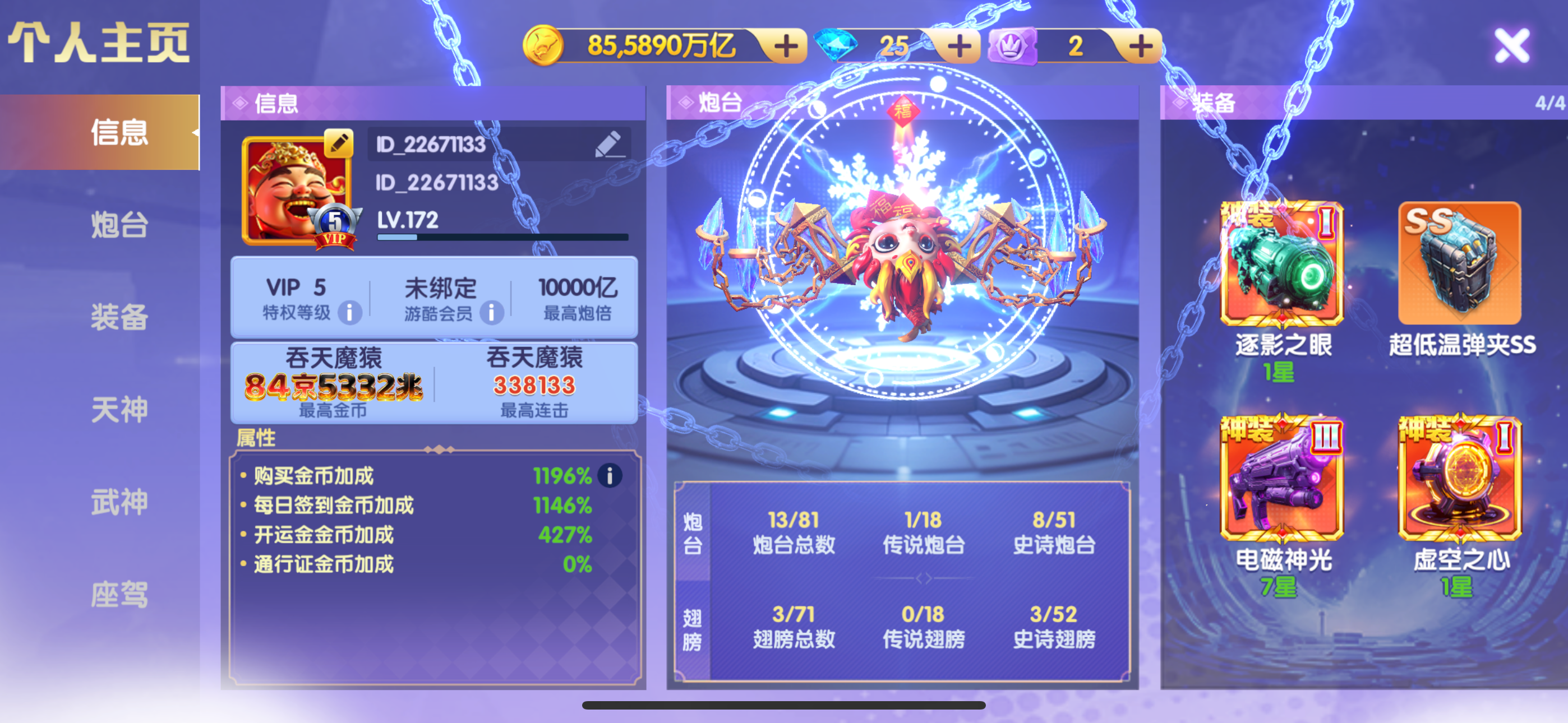 官Q-V12-3329加成-1万亿炮-天神觉醒-多武神-带座驾-破产号