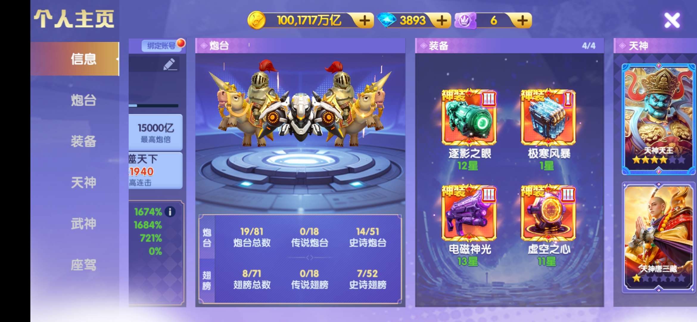 v12 500京 2700斩 神力7800 16武神 羁绊+37座驾4级洪荒5000多炸弹不要代售