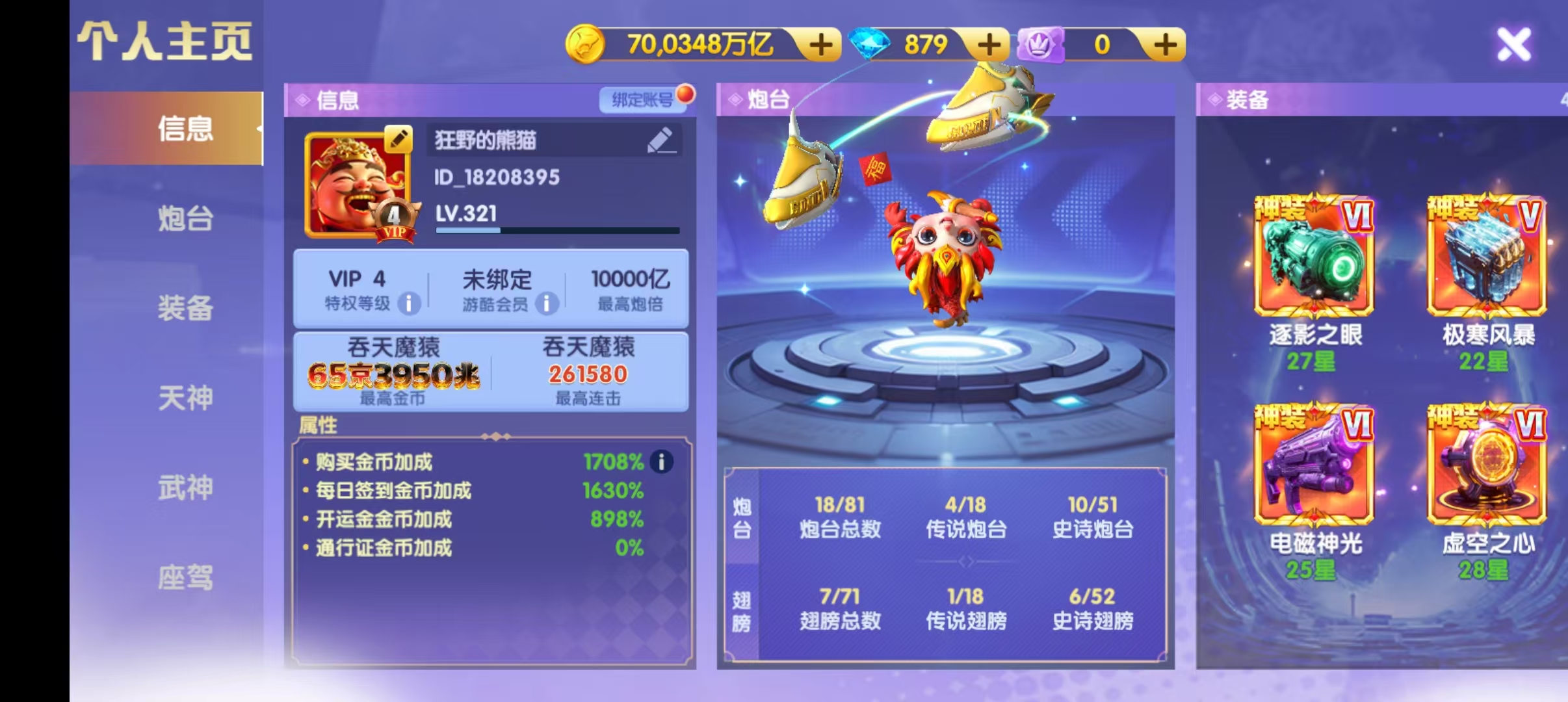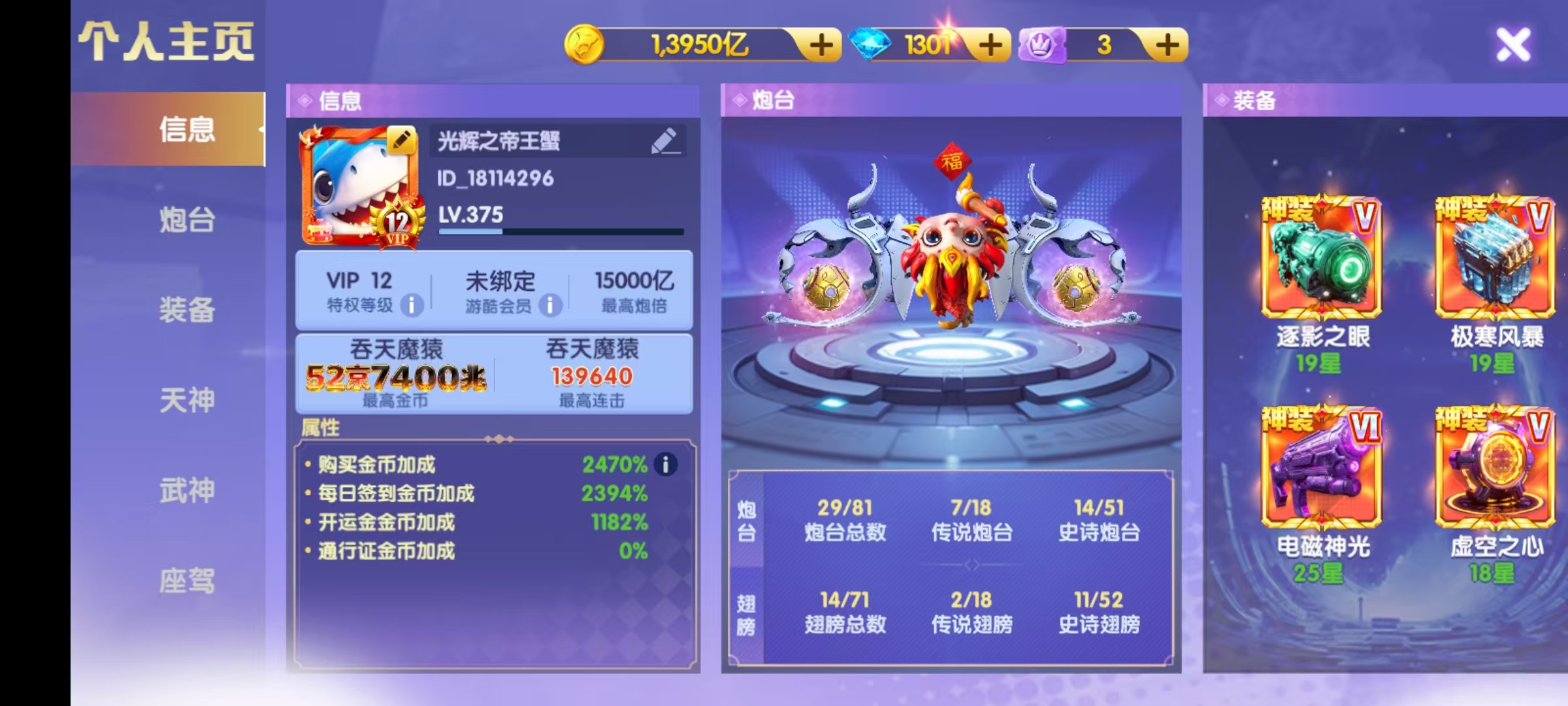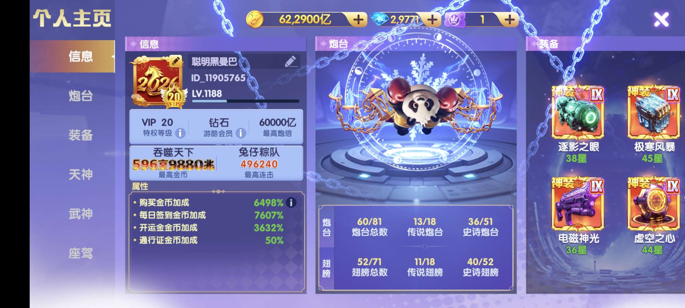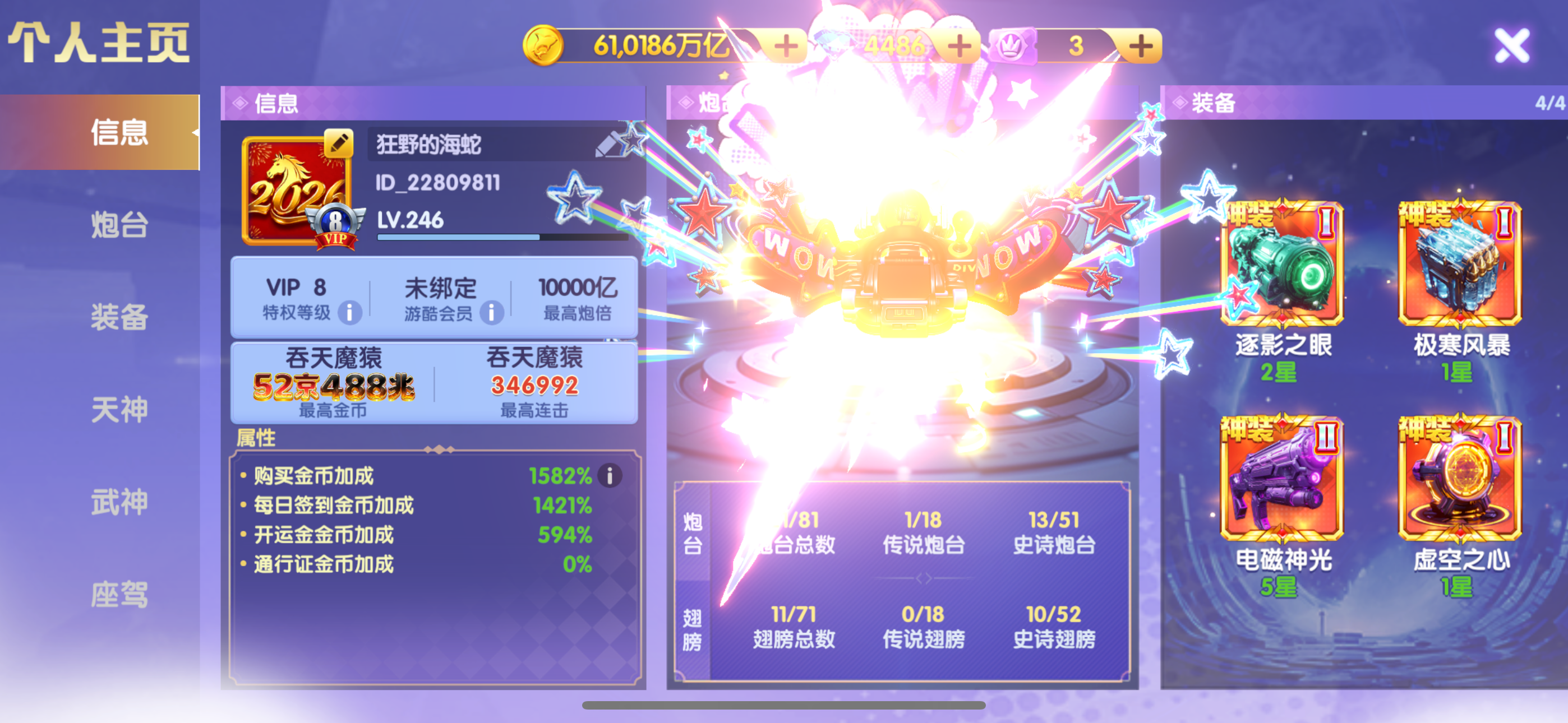 官Q-V7-1836加成-1.5万亿炮-248京-卖断-三级洪荒-多武神-带座驾