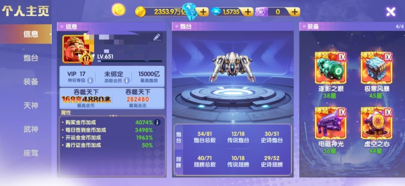 官方Q v17 4074加成 1.5万炮 29武神 7座驾 感兴趣咨询