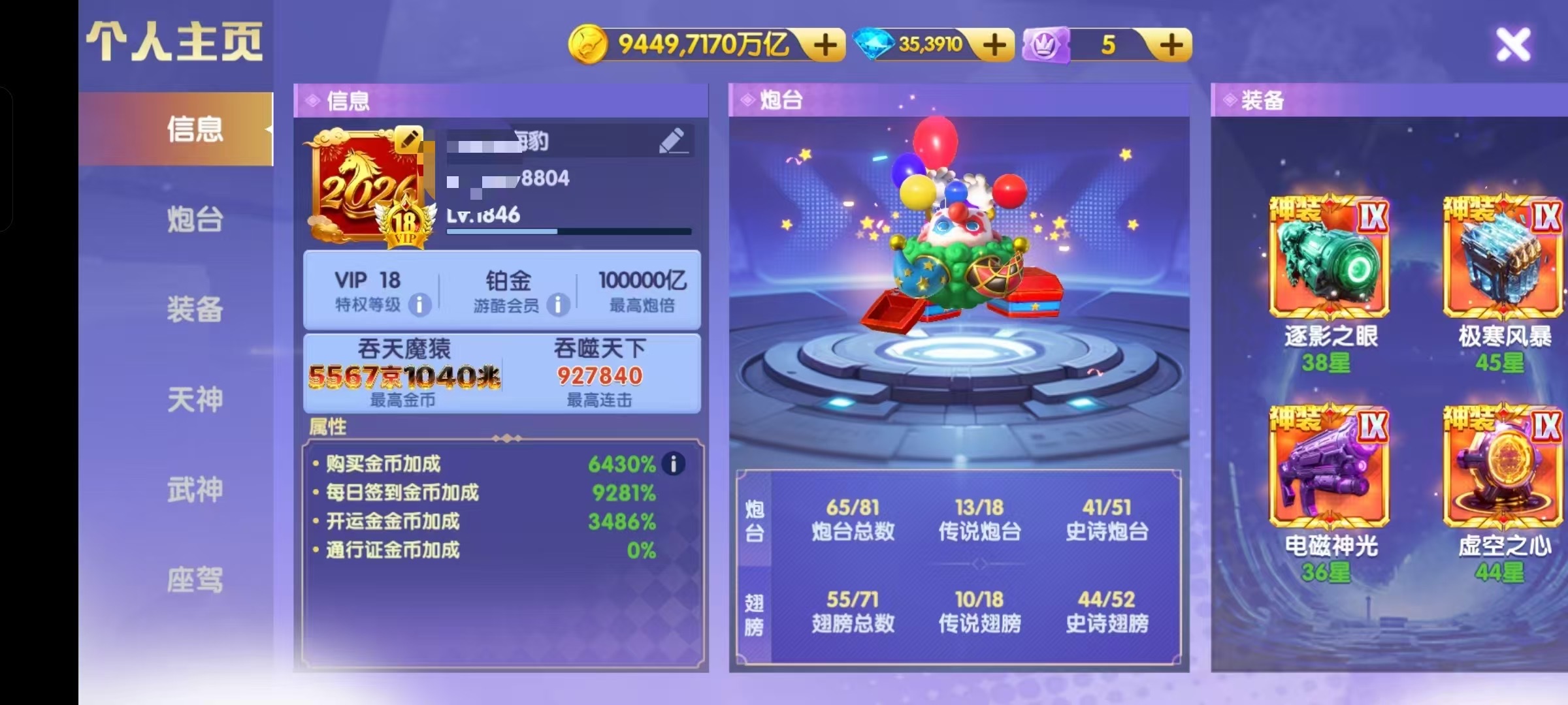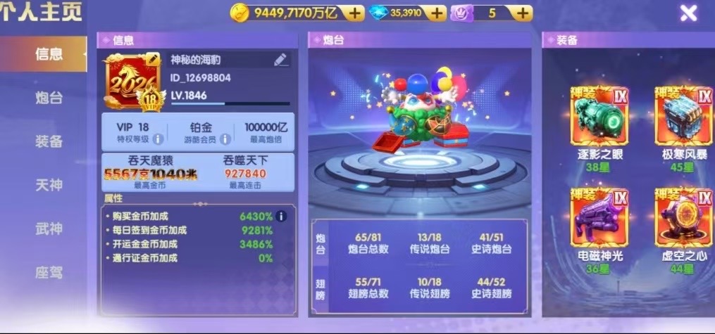 鱼乐达人小米版极品爆发号,402京,马上3万炮,神装套,天神觉醒,洪荒4级,西游羁绊,武神1200连击!具体看图!账号换绑一切,安全可靠!爆率咋样自己看七日排行
