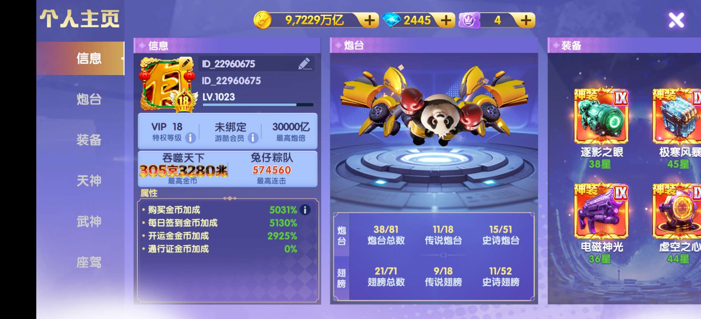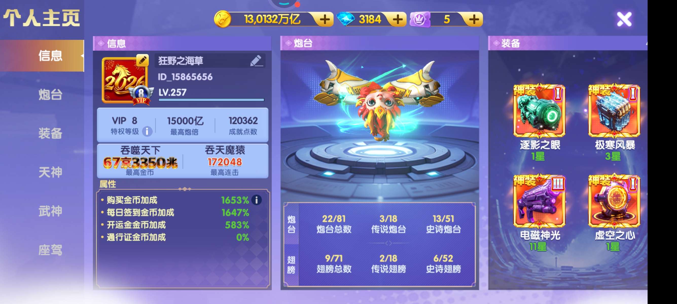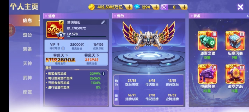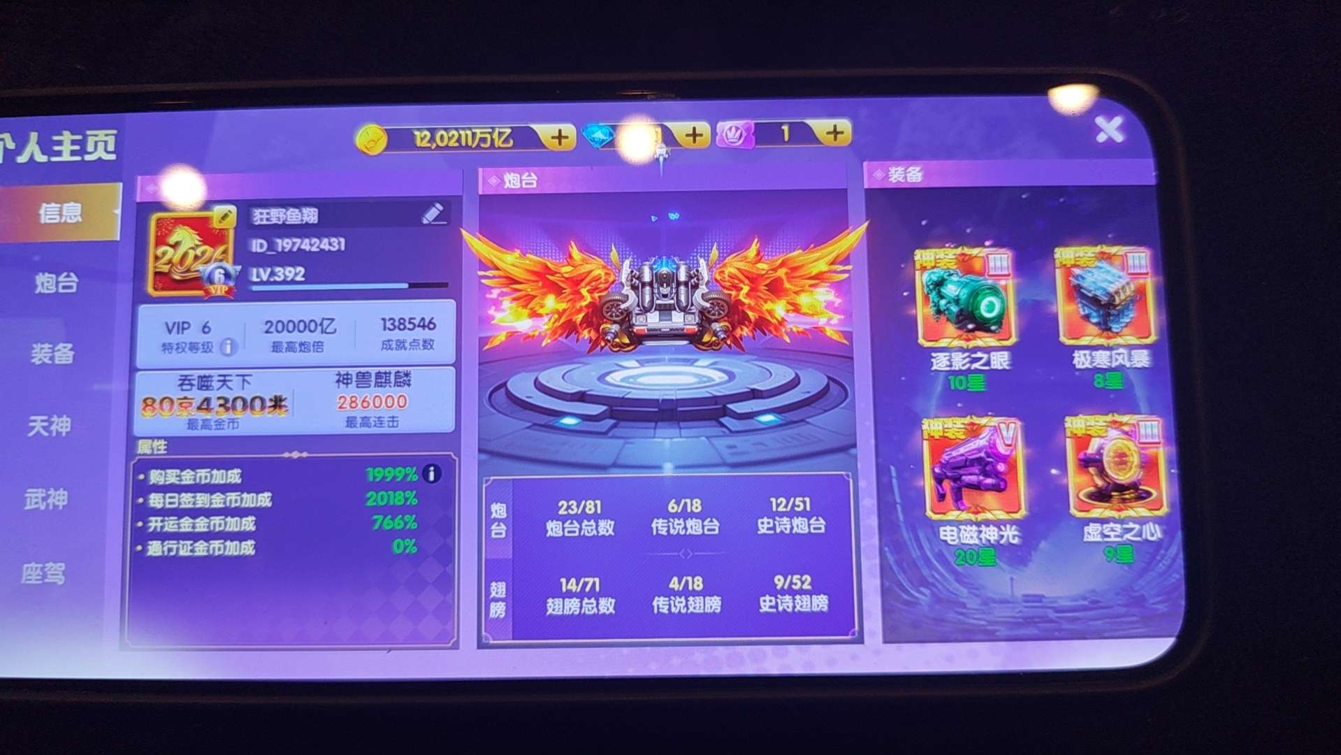 官方Q v12 2685加成 1.5万炮 20武神 5座驾 细节看图 感兴趣咨询