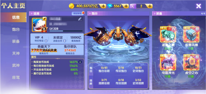 小米4出2.5回。可纯玩基本都是15000炮带羁绊4荒最高3万基础炮每天10-100京大量有高分