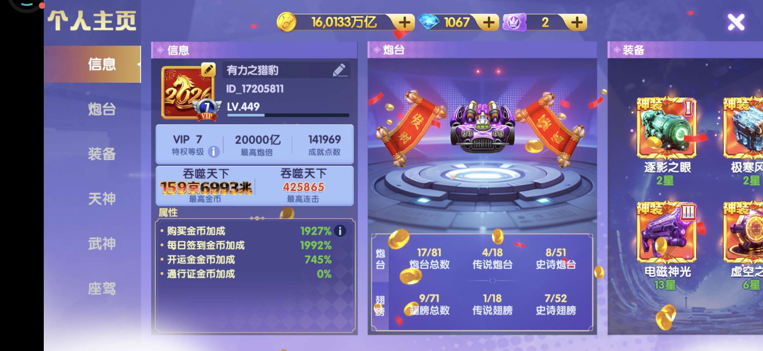 官方Q v17 4074加成 1.5万炮 29武神 7座驾 感兴趣咨询