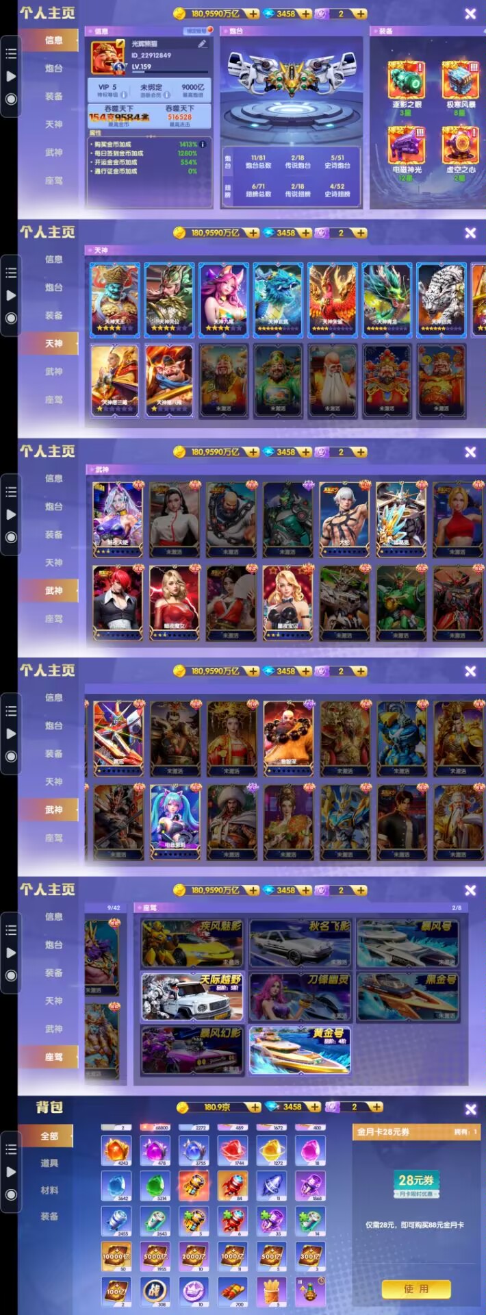 官方Q v18 4009加成 1.5万炮 武神29 6座驾 细节看图 感兴趣咨询