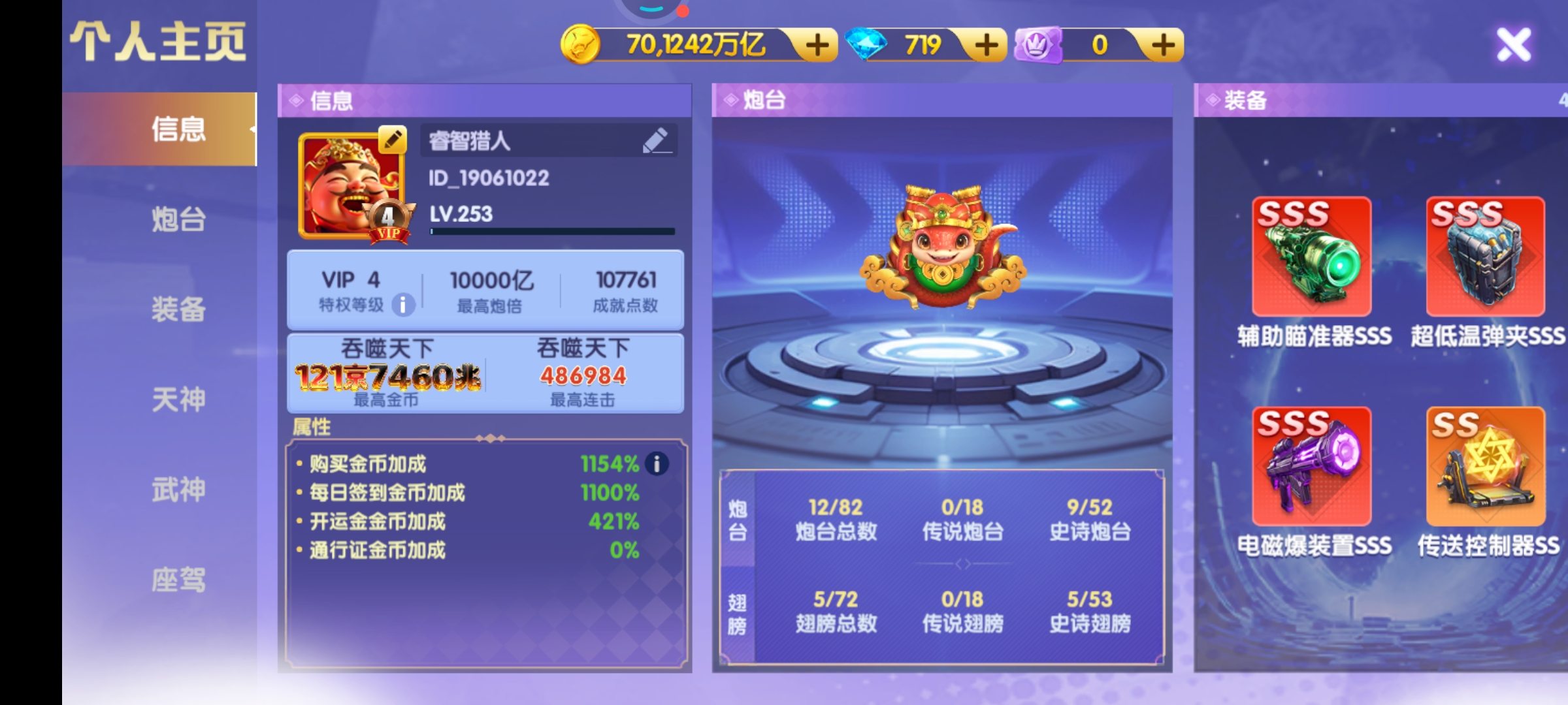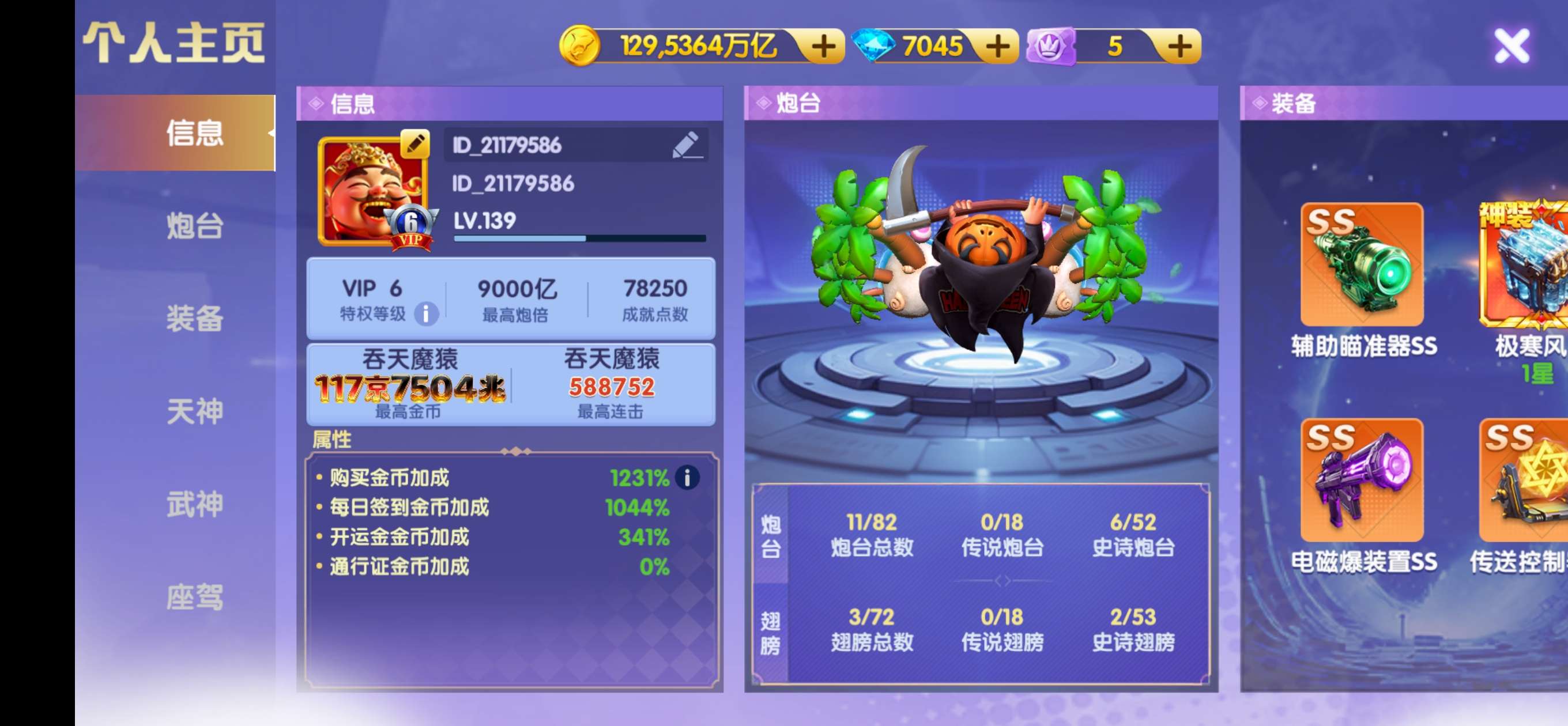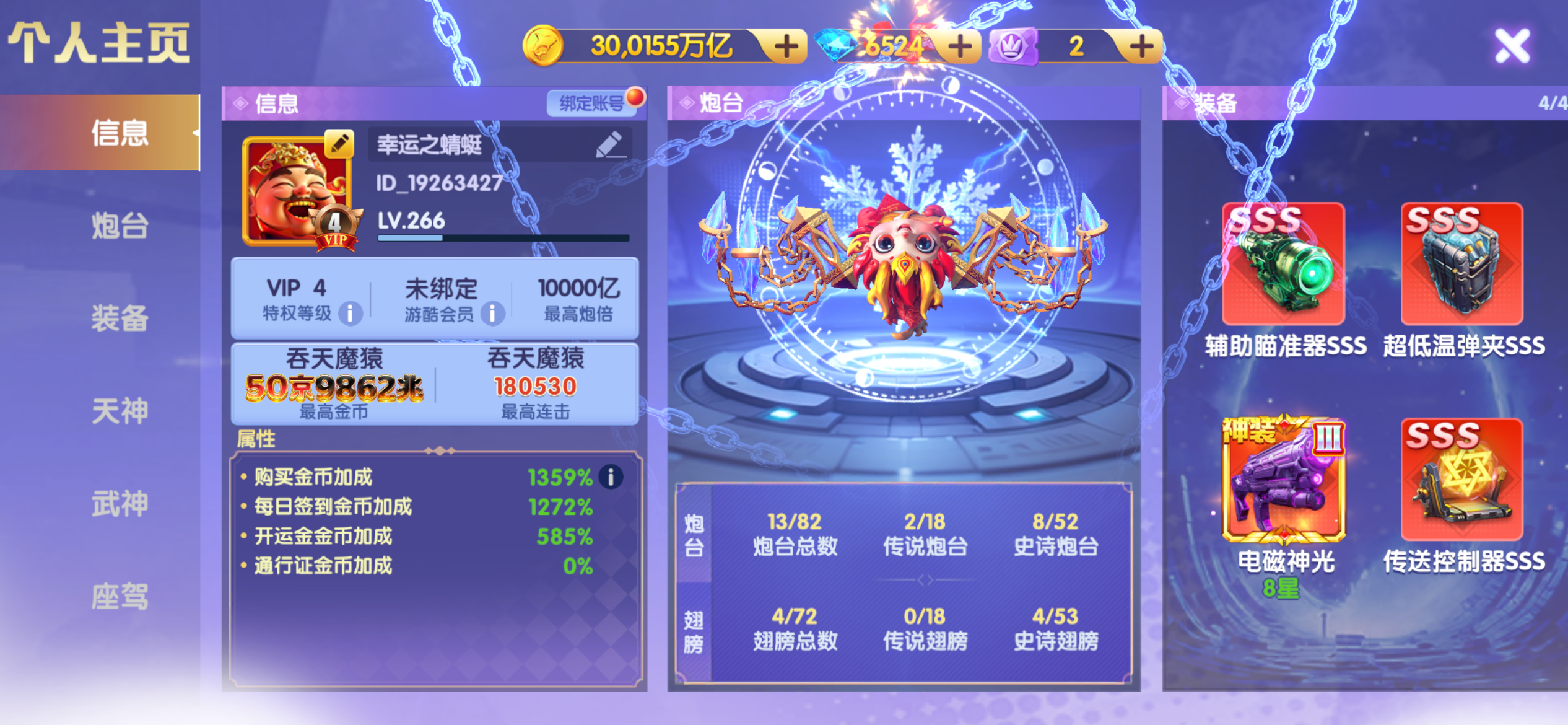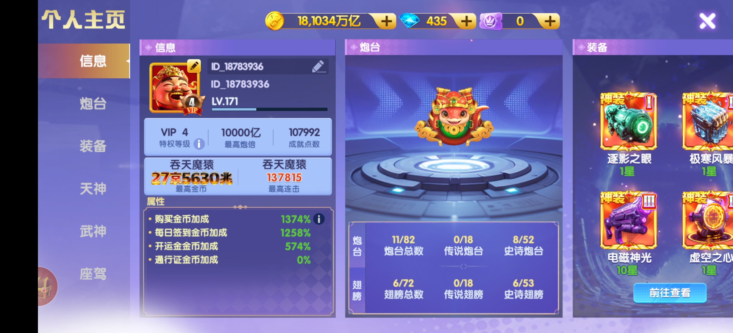 精品1.5万炮:160京全神电10星+天神4200洪荒三西游羁绊+武神1500连斩+双座驾,8开买断