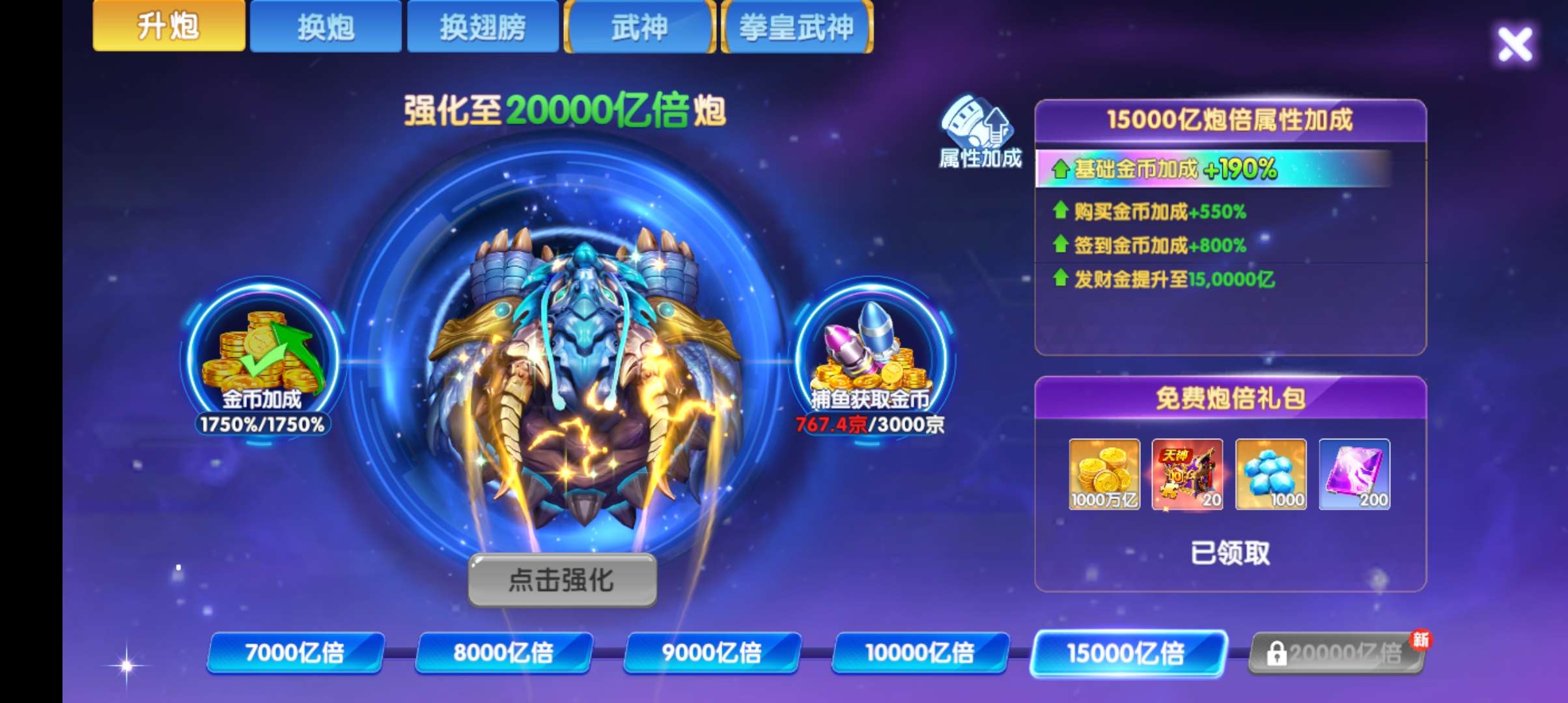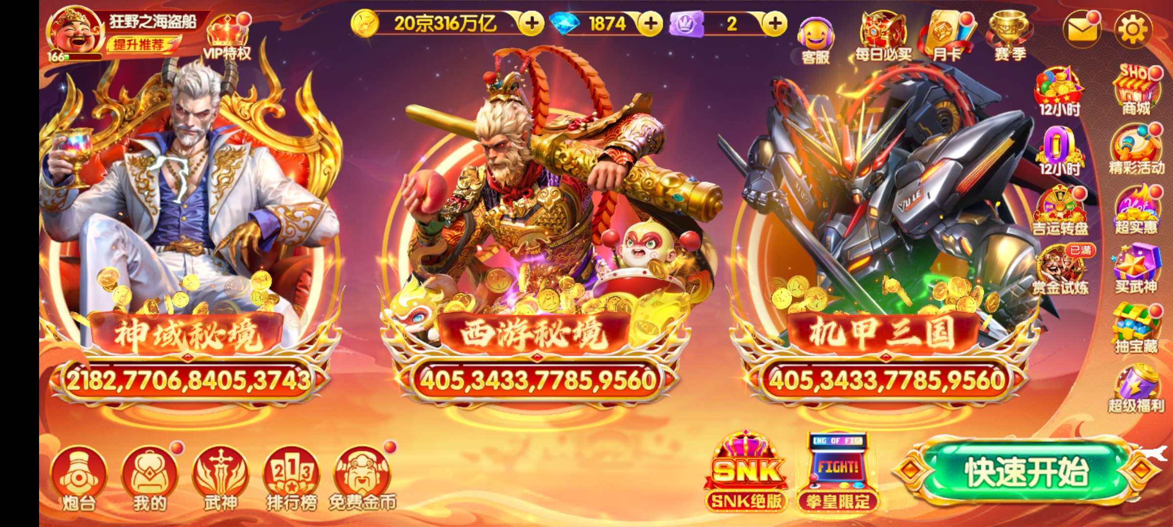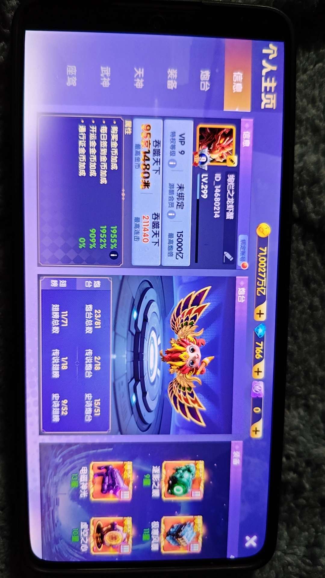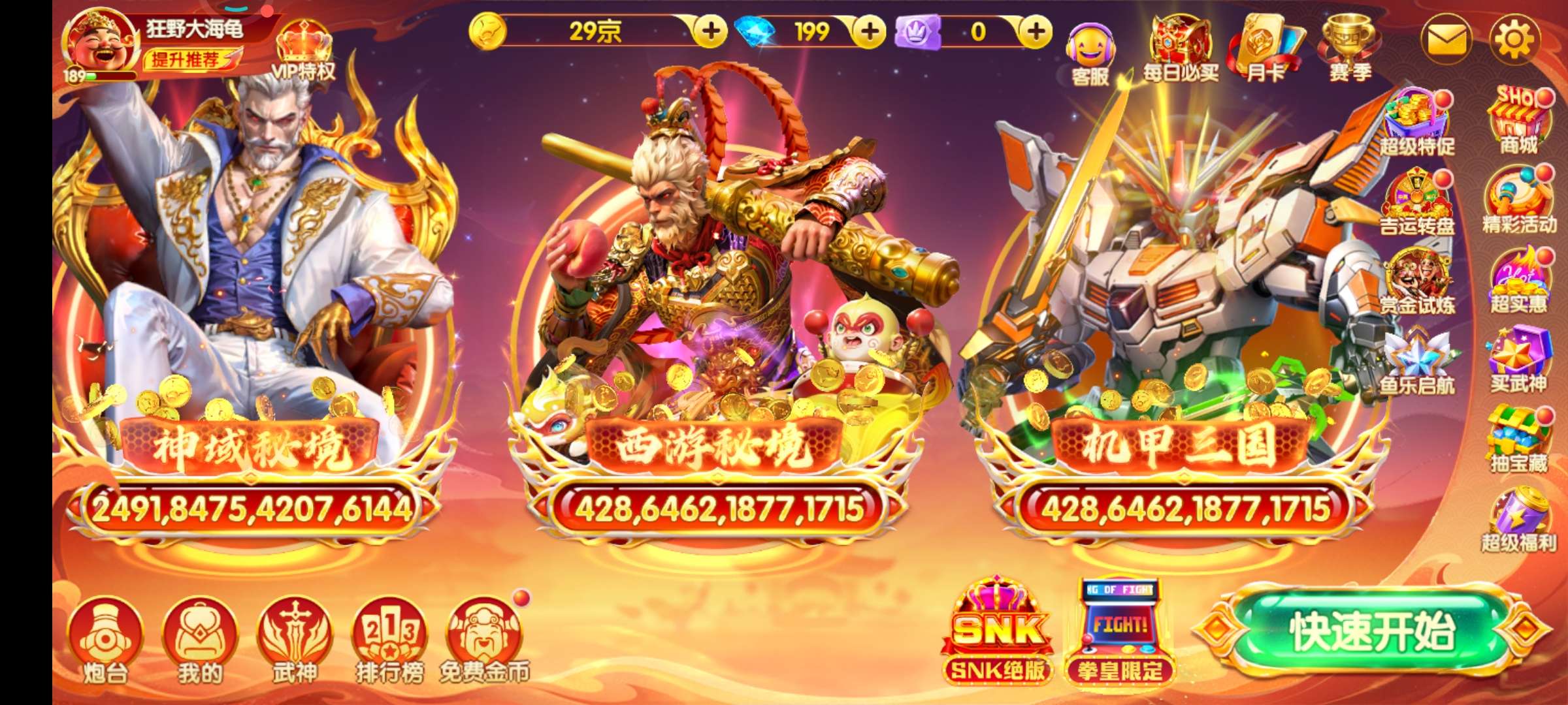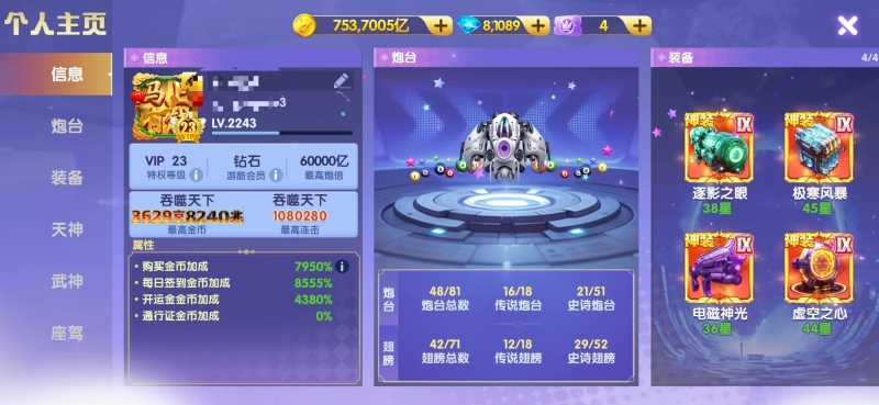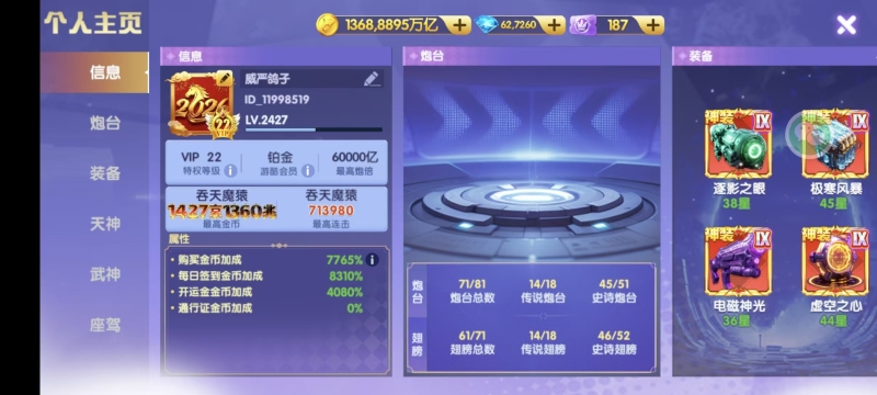 安卓华为 v9 2428加成 万炮 10天神 18武神 7座驾