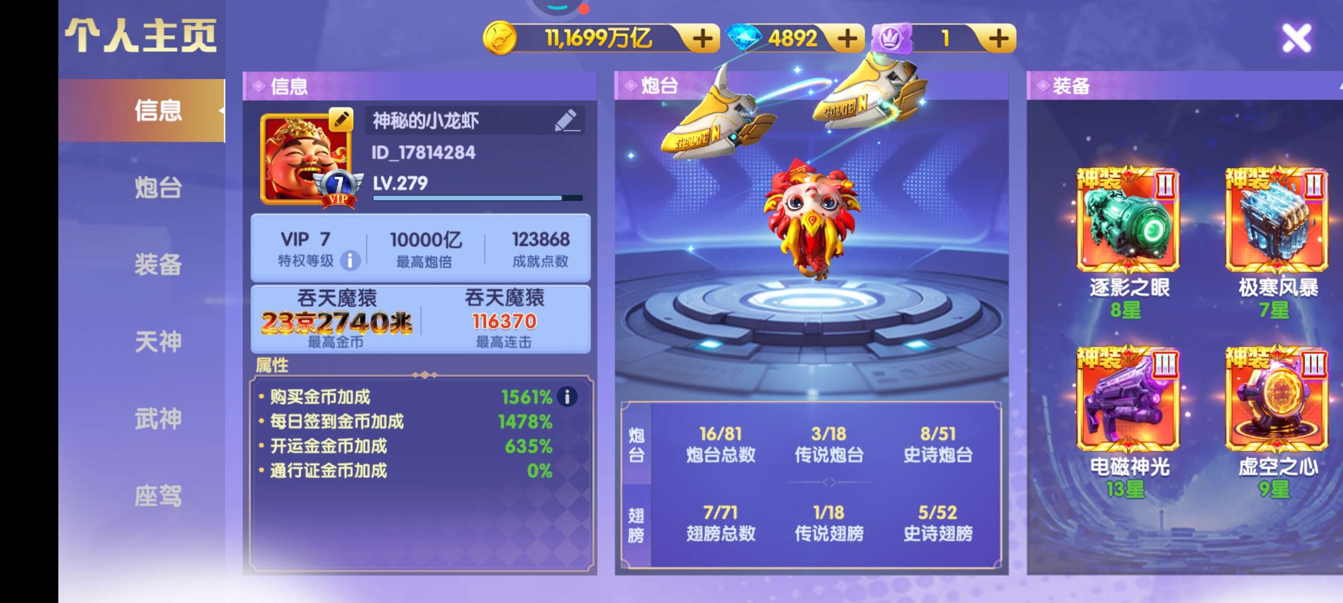 微信登录-V23-7950加成-4个返券翅膀满天神 基本全武神 可换绑
