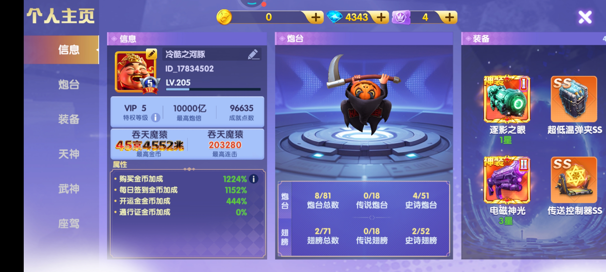 小米5出3回。可纯玩基本都是15000炮带羁绊4荒最高3万基础炮每天 10-100京大量有高分几百分