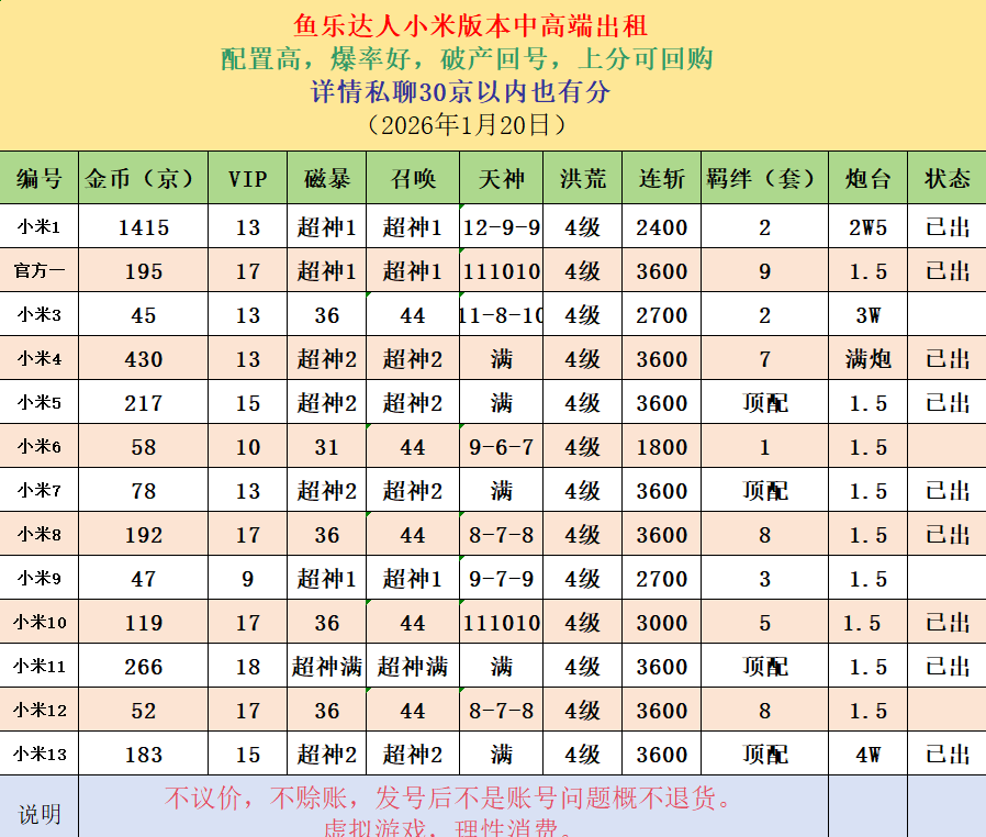 安卓小米 | 全部区服 | 可购终身包赔