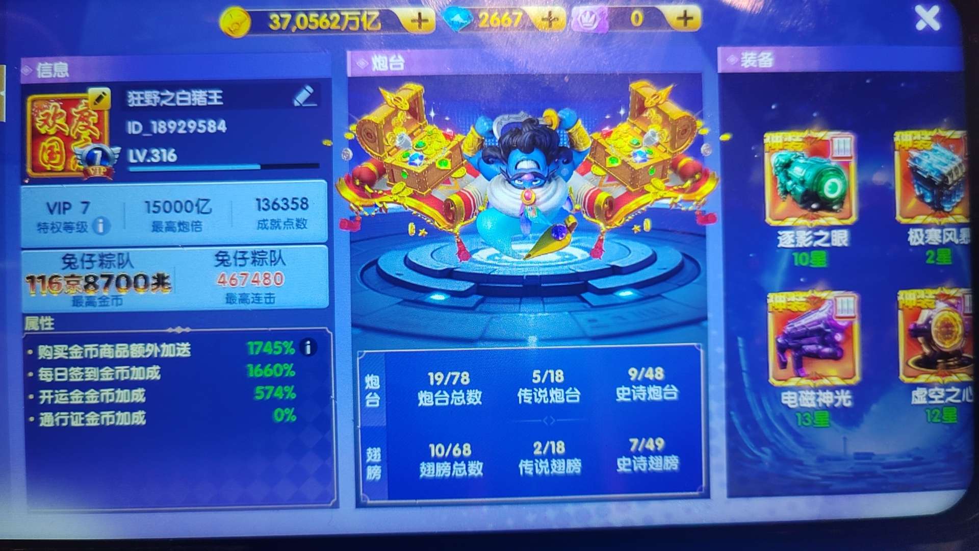 鱼乐达人出个破产号官版新QV17 1.5万炮 神电22 具体配置看图 羁绊基本全满